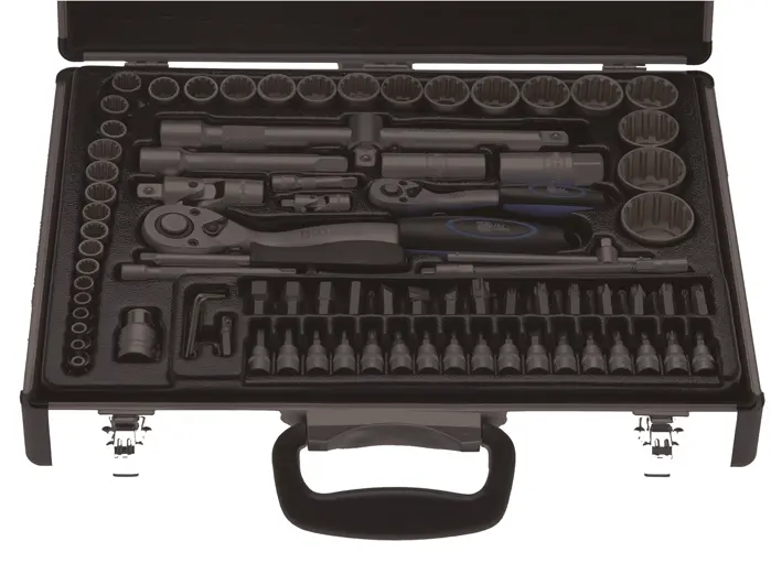 Vnitřní prostor je navržen tak, aby pojmul všechny komponenty sady BGS 2297. Přehledné uspořádání umožňuje rychlý přístup ke každému kusu nářadí, což šetří čas při práci. Kazeta je vybavena pevnými uzávěry, které zabraňují nechtěnému otevření během transportu.
