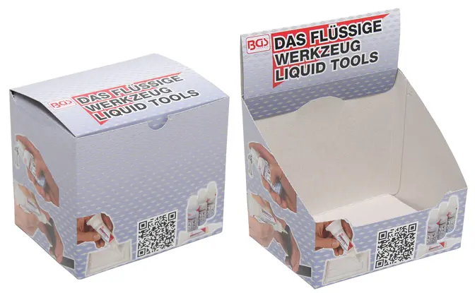 Lepenkový stojan "Tekuté nářadí" (BGS1080609) je určený pro prezentaci a uspořádání produktů v prodejních prostorách. Konstrukce z pevné lepenky umožňuje snadné sestavení a manipulaci, což ocení každý, kdo potřebuje rychle a efektivně vystavit zboží.