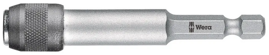 Univerzální držák pro upnutí bitů s připojovacím rozměrem vnějšího šestihranu 1/4" podle DIN ISO 1173-C 6,3. S rychloupínací hlavou pro rychlou výměnu bitů. Šestihran 1/4", vhodný pro šroubovací zařízení s upnutím podle DIN ISO 1173-F 6,3.