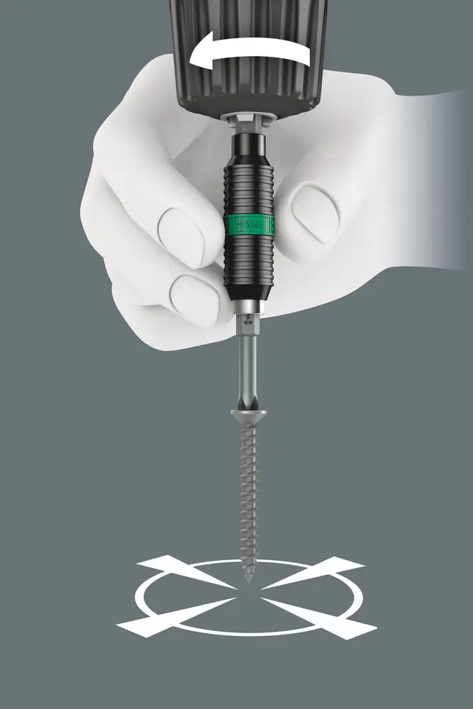 Univerzální držák pro upnutí bitů s připojovacím rozměrem vnějšího šestihranu 1/4" podle DIN ISO 1173-C 6,3 a E 6,3 (ISO 1173). Držáky BiTorsion od firmy Wera mají zkrutnou pružinu, která zachytí menší špičky zatížení při šroubování. Společné použití bitů BiTorsion a jejich torzní zóny výrazně prodlužuje životnost nářadí. Držáky BiTorsion od firmy Wera lze však také použít s běžnými bity. Technologie Rapidaptor umožňuje upnutí bitů i bez manipulace s pouzdrem. Vyjmutí bitu se provádí jednoduchým posunutím směrem dopředu - pro bleskovou výměnu bitů, také jen jednou rukou. Šestihran 1/4", vhodný pro šroubovací zařízení s upnutím podle DIN ISO 1173-F 6,3.