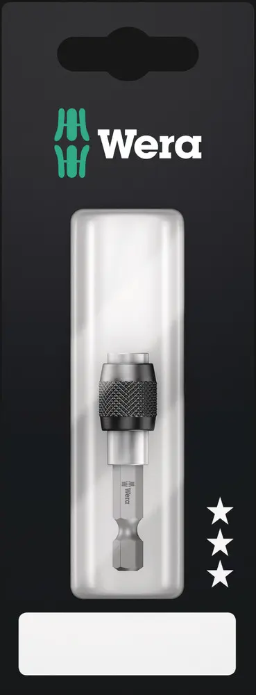 Univerzální držák pro upnutí bitů s připojovacím rozměrem vnějšího šestihranu 1/4" podle DIN ISO 1173-C 6,3. S rychloupínací hlavou pro rychlou výměnu bitů. Silný permanentní magnet drží bity velmi pevně. Šestihran 1/4", vhodný pro šroubovací zařízení s upnutím podle DIN ISO 1173-F 6,3.