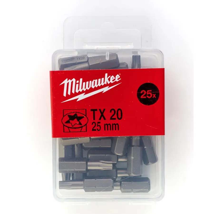 Šroubovací bity Milwaukee TX 20 x 25 mm jsou určeny pro práci s vruty a šrouby s drážkou typu Torx. Díky délce 25 mm se hodí pro použití v aku šroubovácích i ručních šroubovacích nástavcích, kde je potřeba přesné vedení a stabilita při práci.