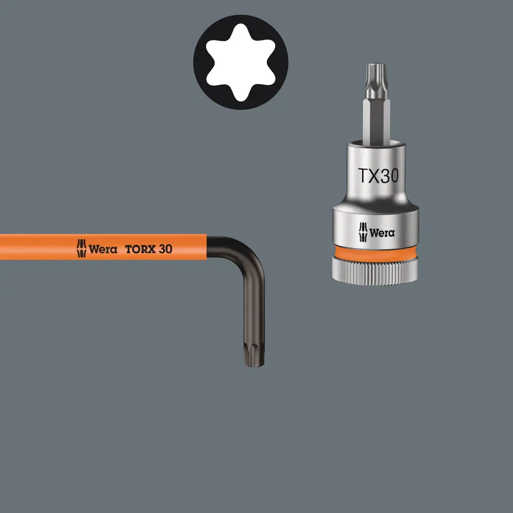 • Úhlový klíč Wera s opláštěním bužírkou na ochranu prstů Díky tomu ergonomická a příjemná rukojeť i při nízkých teplotách. Na jedné straně profil TORX® BO: Díra v bitu a čep v šroubu TORX® s dírou zabraňuje nedovolenému povolení. Bezpečnostní šroubování Kulový tvar profilu umožňuje bezpečnou práci i v těžko dosažitelných montážních polohách. Povrchová úprava BlackLaser zajišťuje vynikající ochranu povrchu i proti korozi a dlouhou životnost. Laserem vypálené, a díky tomu trvalé, označení velikosti na úhlovém klíči pro snadné vyhledávání.
