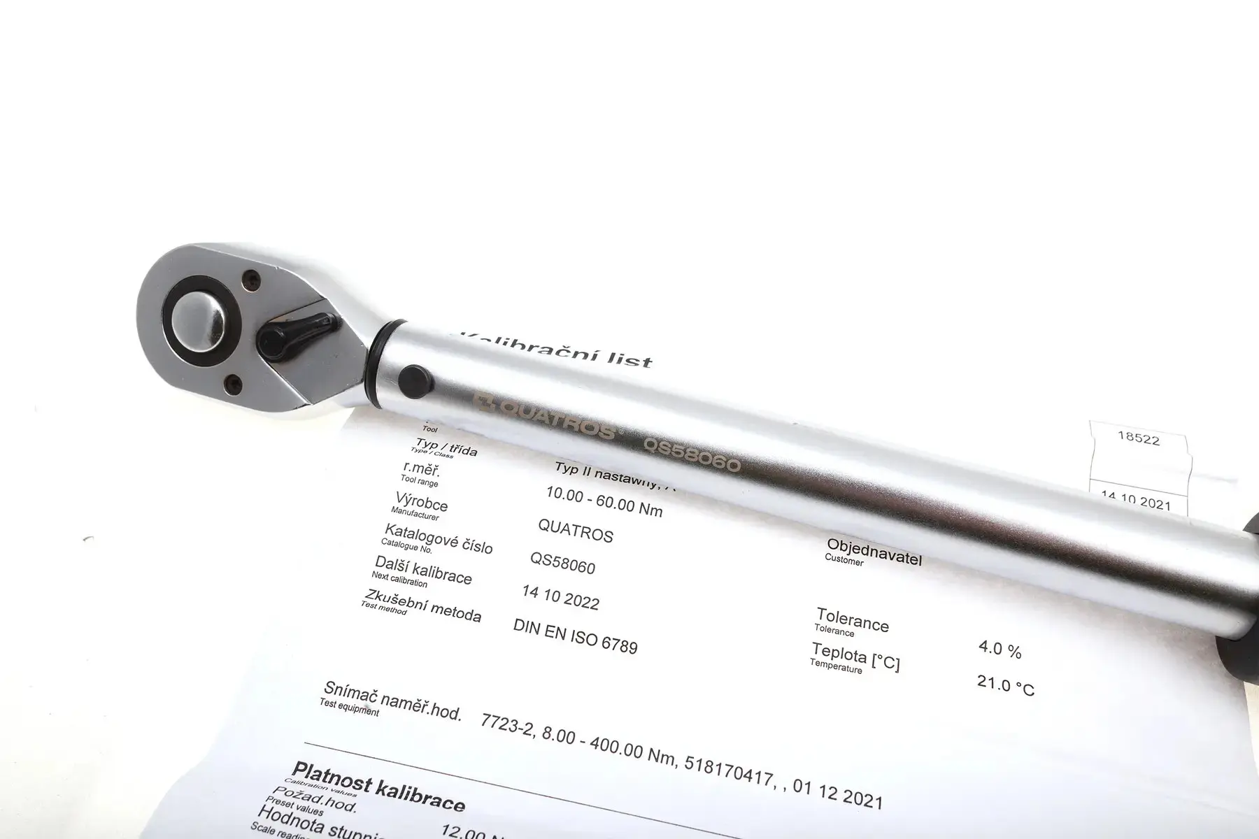 Dodáva sa s kalibračným certifikátom. Každý kľúč sa testuje samostatnea certifikovaný podľa normy ISO 6789, protokol v angličtine je súčasťou balenia