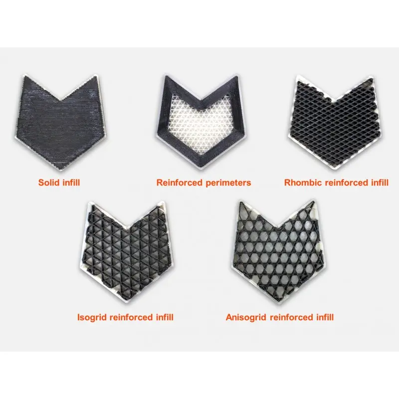 Kompozitná výplň poskytuje maximálnu pevnosť pri minimálnom použití materiálov, tj minimálna hmotnosť, minimálna výrobná doba a minimálna cena vytlačeného dielu