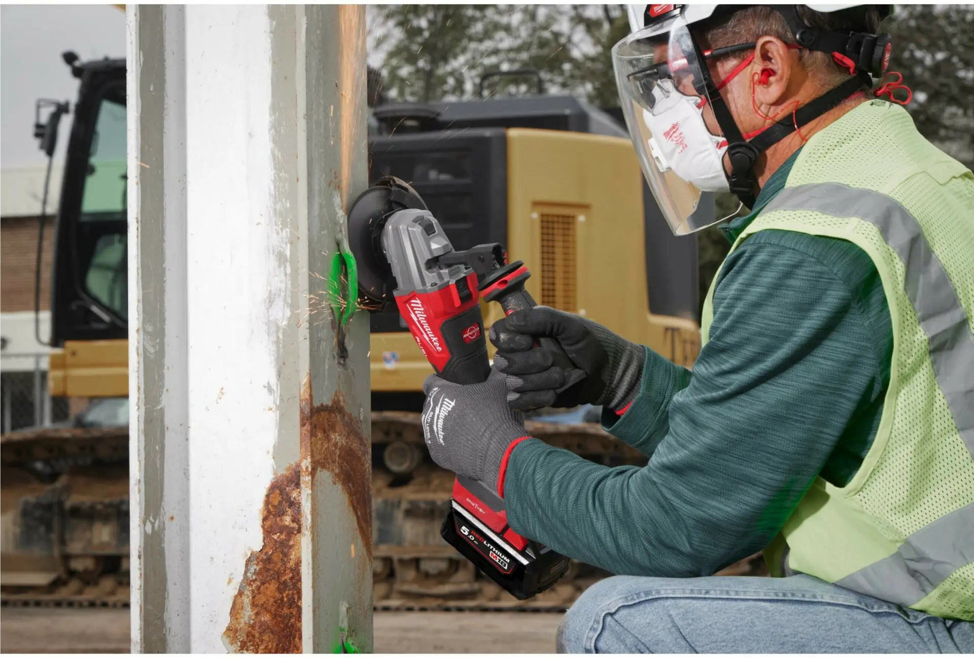 Aku úhlová bruska Milwaukee M18 FSAGSVO125X-0X s průměrem kotouče 125 mm nabízí kolébkový spínač a je dodávána bez akumulátoru. Vhodná pro řezání i broušení kovových materiálů.