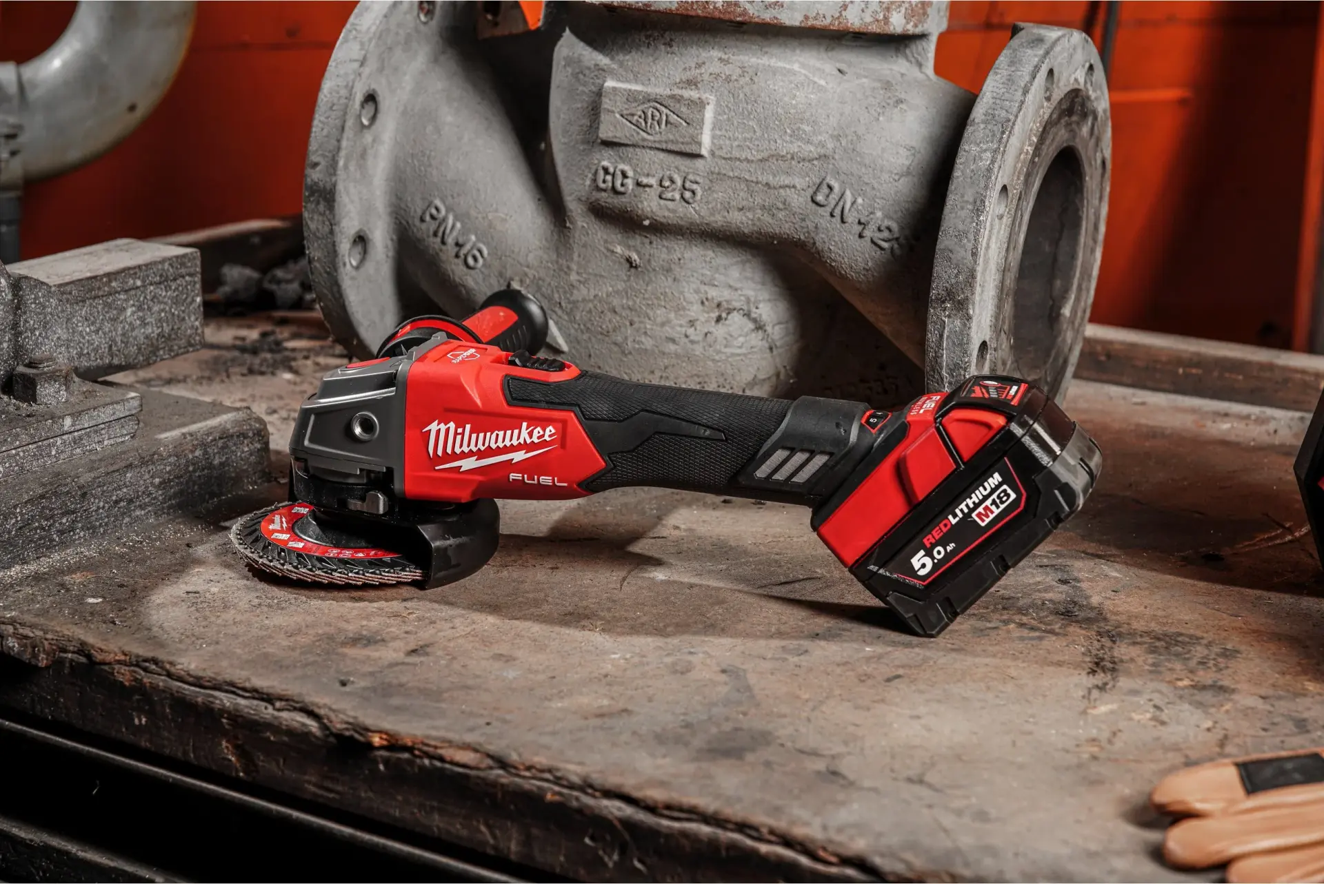 Aku uhlová brúska 125 mm (1200 W) Milwaukee M18 FSAGV125XB-0 s posuvným spínačom, brzdou a reguláciou otáčok (bez aku) 4933499158 (MI4933499158)