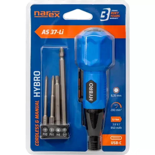 Aku hybridný skrutkovač Narex AS 37-Li HYBRO (0,85 Ah) (NA65405670)