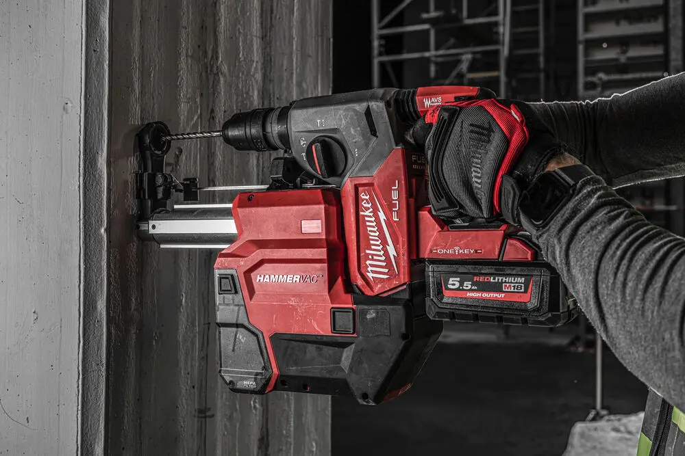 Aku 4-režimové kladivo 26 mm SDS-plus s maticou Fixtec a odsávaním Milwaukee M18 ONEFHXDEL-552C (5,5 Ah) (MI4933478506)