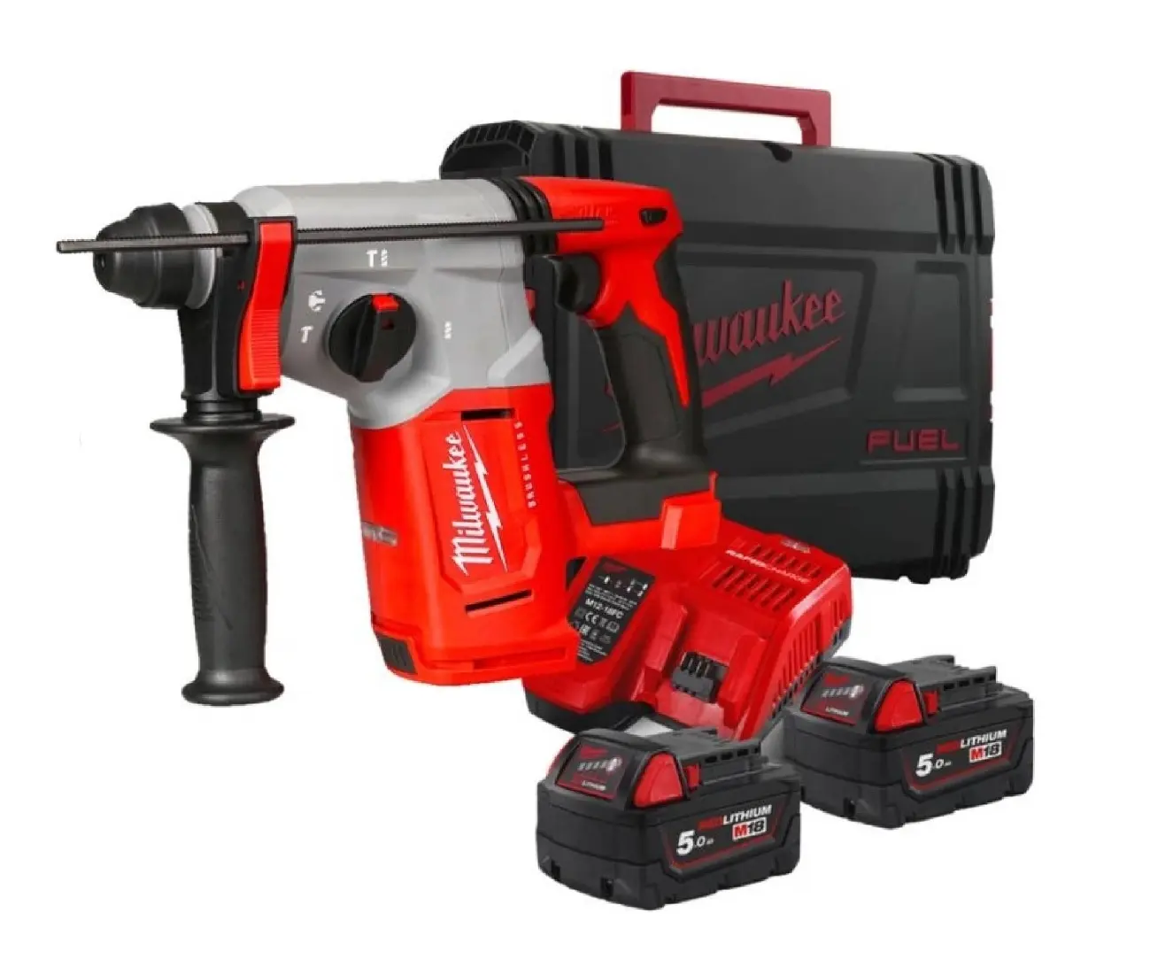 bezuhlíkový motor, napätie 18 V, akumulátor 5,0 Ah, otáčky 0 ÷ 1400 U.min-1, úderov 0 ÷ 5100 1.min-1, vrták (drevo /oceľ/murivo) 26/13/26 mm, skľučovadlo SDS-plus, energie úderu 2,3 J