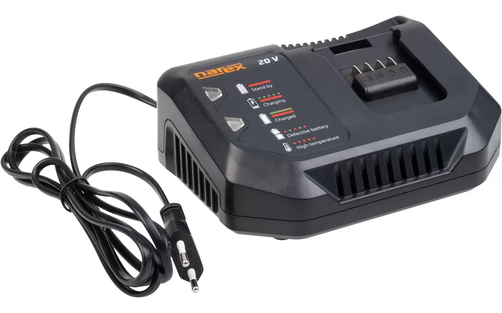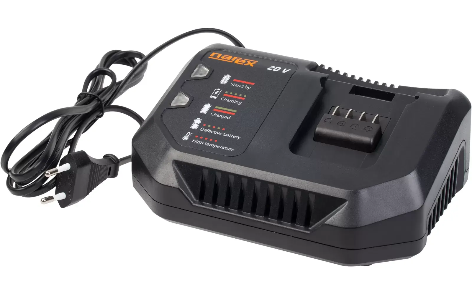 Akumulátorová nabíjačka Narex AN 201. Vhodná na nabíjanie aku náradia pre rad Narex Camouflage. Slot 20 V. Zdroj energie: zásuvka 230-240V.