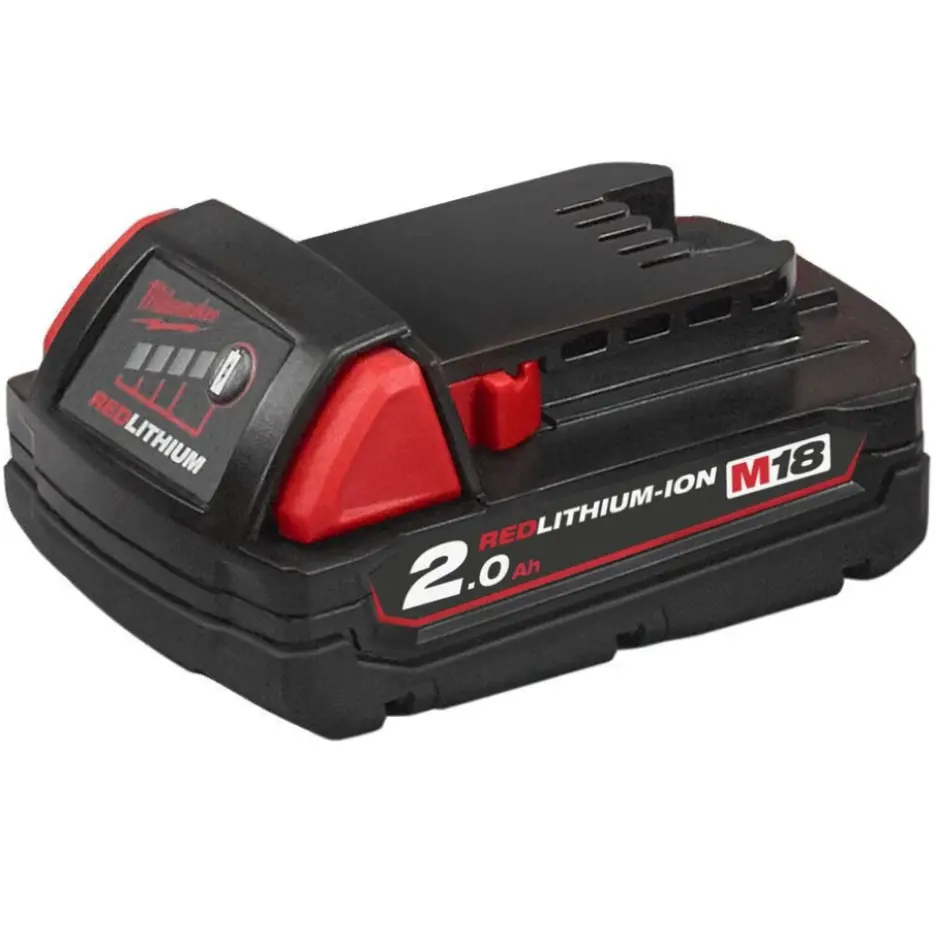 Akumulátorové náradie MILWAUKEE - MILWAUKEE M18 B2: 18 V / 2,0 Ah. REDLITHIUM, elektronika REDLINK, ochrana proti preťaženiu, systém kontroly teploty, monitorovanie jednotlivých článkov, ochrana proti vybitiu. Až 2× dlhší čas chodu, o 20 % vyšší výko