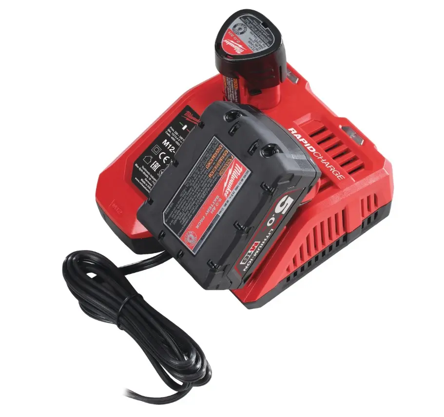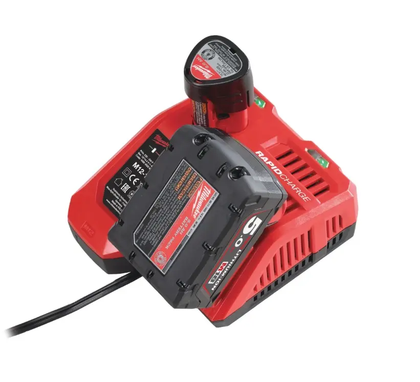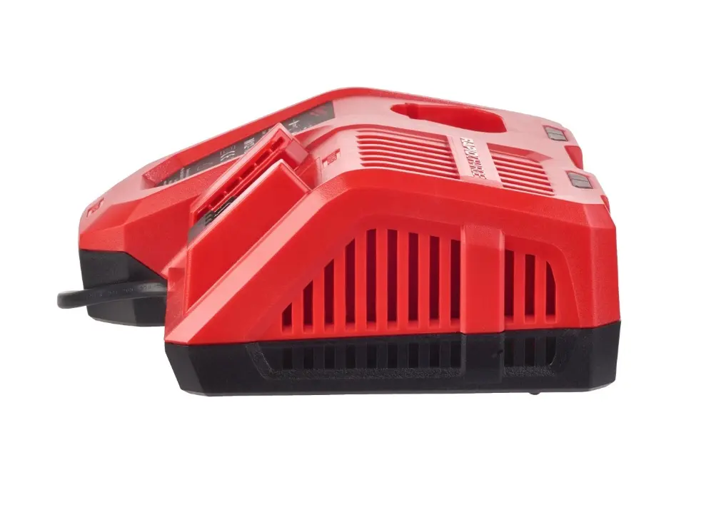 Rýchlonabíjačka Milwaukee M18 M12-18FC Rýchlonabíjačka Milwaukee je vhodná na nabíjanie všetkých akumulátorov M18, M14 a M12 REDLITHIUM-ION. - Inteligentná nabíjačka Milwaukee na nabíjanie všetkých akumulátorov M12™, M14™ a M18™ REDLITHIUM-ION™ s kapacitou (Ah) 2,0 - 4,0 - 5,0 - 6,0 - 9,0 - Nabíjačka Milwaukee využíva sekvenčné nabíjanie - prvý pripojený, prvý nabitý - čo má za následok kratší čas potrebný na zvládnutie nabíjacích cyklov - 12 V a 14,4/18 V akumulátory môžu byť pripojené k nabíjačke súčasne, ale budú sa nabíjať postupne - Nabíjanie akumulátorov M12™ REDLITHIUM-ION™ 2,0 Ah / 4,0 Ah trvá 28 minút / 57 minút alebo menej - Akumulátory M18™ REDLITHIUM-ION™ 2,0 Ah / 4,0 Ah / 5,0 Ah sa nabíjajú 26 minút / 47 minút / 59 minút alebo menej - Rýchlonabíjací prúd je 6 A - Počet rozsvietených LED indikuje stav nabitia. Blikajúce LED diódy indikujú maximálnu rezervu energie 10 %