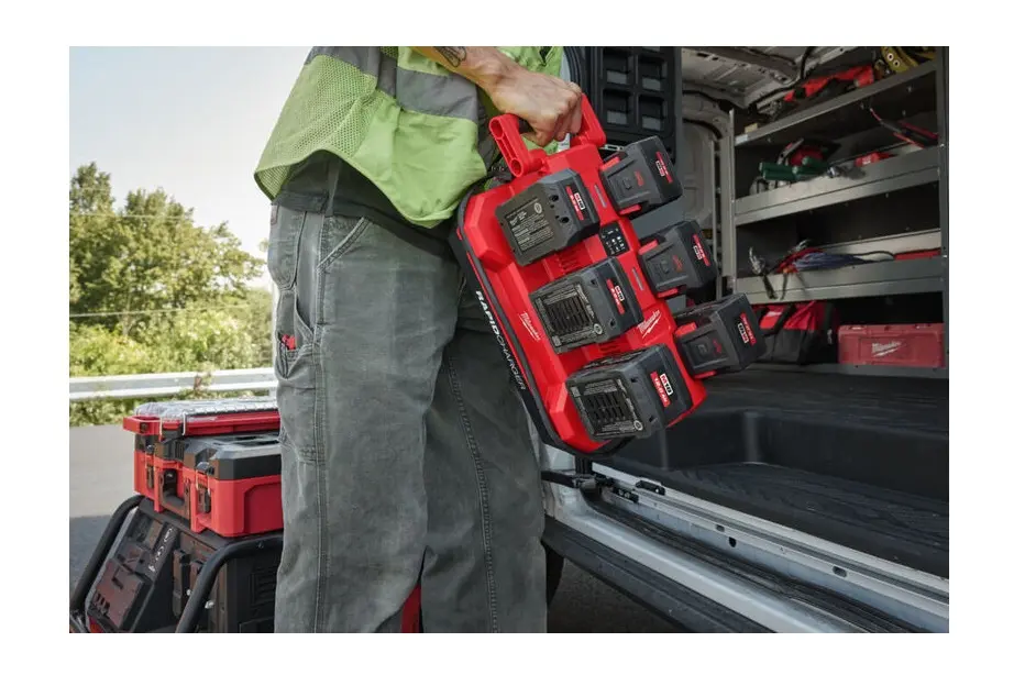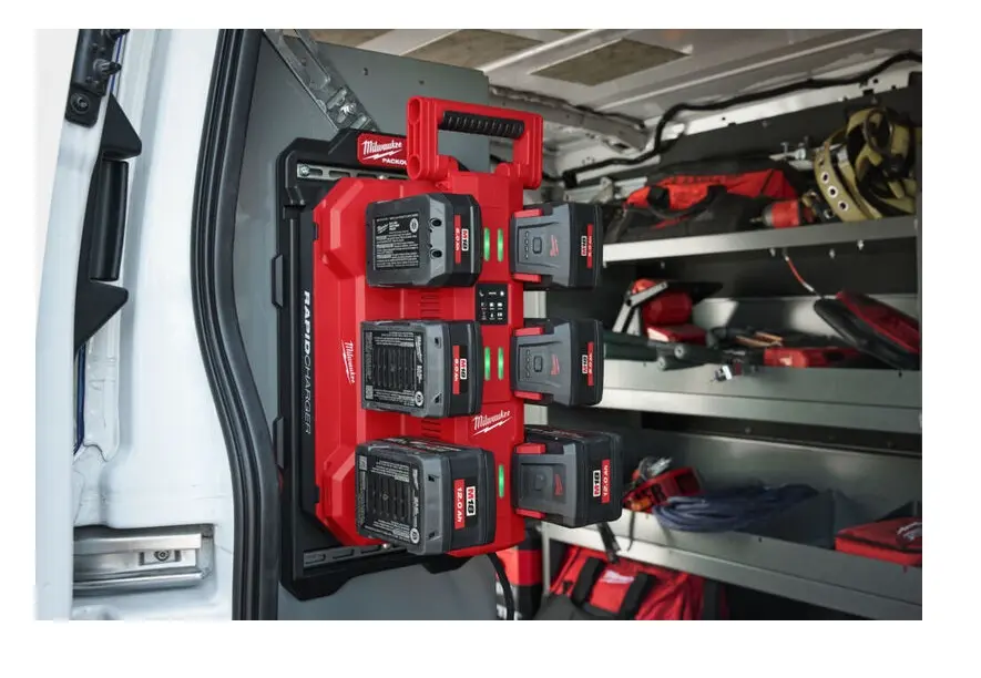 Akumulátorová nabíječka Milwaukee M18 MPC6, inteligentní rychlonabíječka se šesti sloty M18. Vhodná pro všechny akumulátory M18, M18 FORGE i M18 High output. Akumulátory se nabíjejí součastně a až 2 akumulátory rychlonabíjením. Kompatibilní se všemi