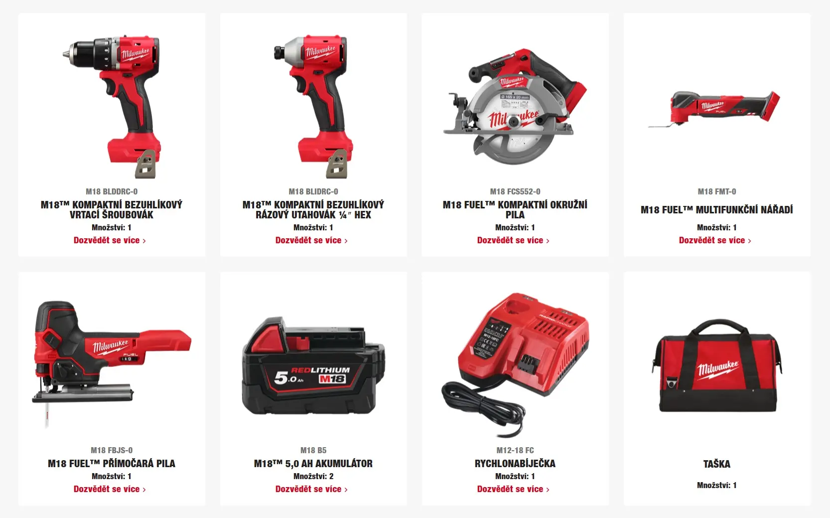 Sada aku nářadí Milwaukee M18 BLCPP5A-502B obsahuje pět nástrojů, dvě 5,0Ah baterie, nabíječku a kufr, což usnadní práci na stavbě i v dílně. Všechny nástroje využívají systém M18, takže baterie lze mezi nimi jednoduše střídat.
