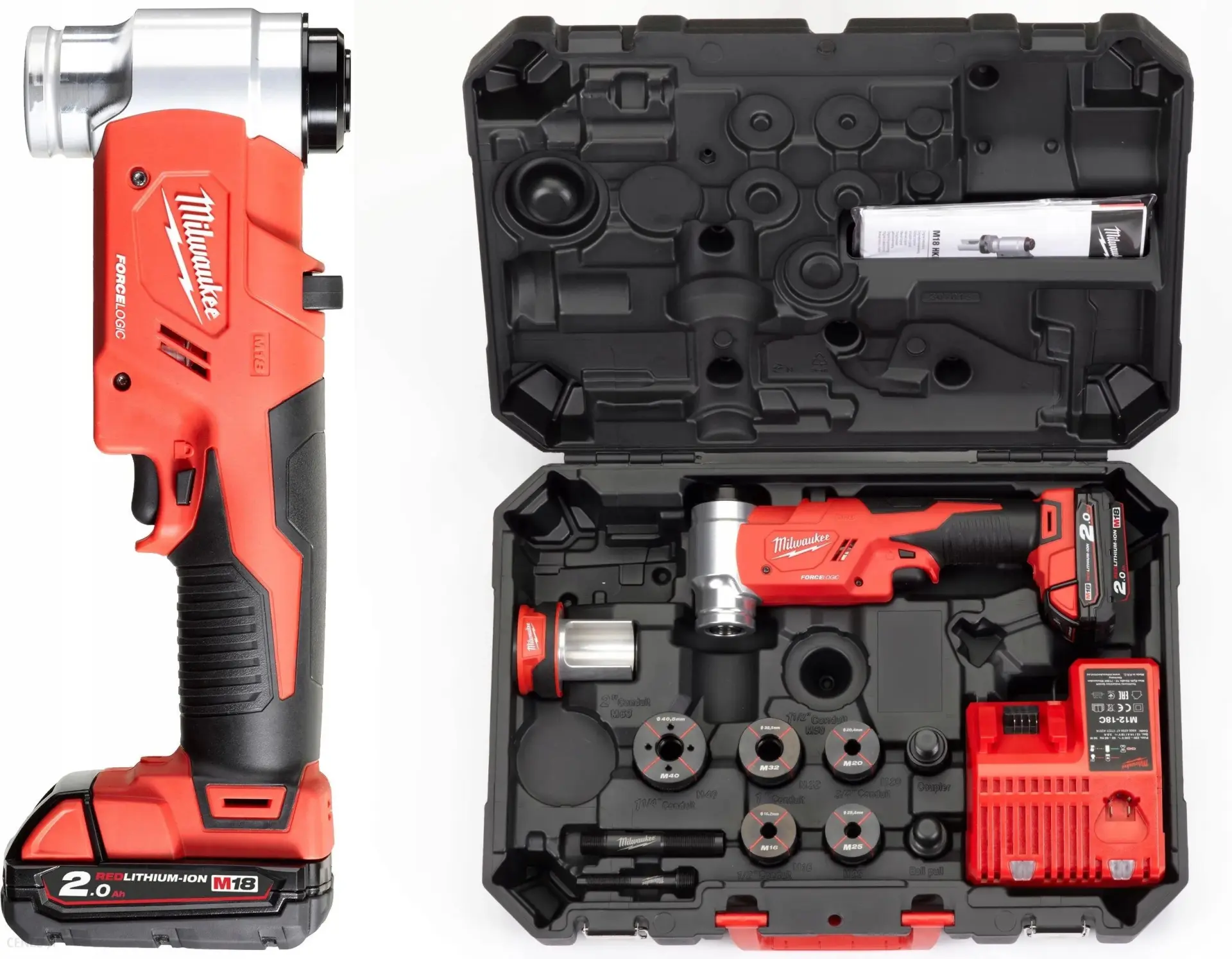 Akumulátorový hydraulický dierkovač Milwaukee FORCE Logic ™ pre výrobu otvorovaž 100 mm do hrúbky plechu 3 mm (oceľ) a 2,5 mm (nerezová oceľ).