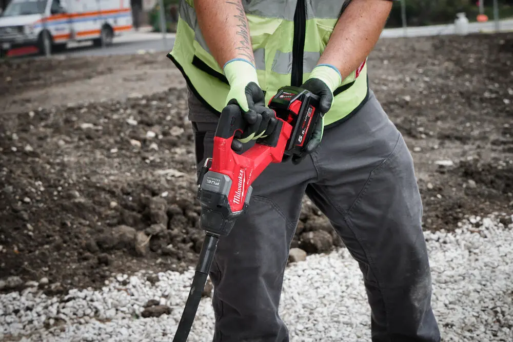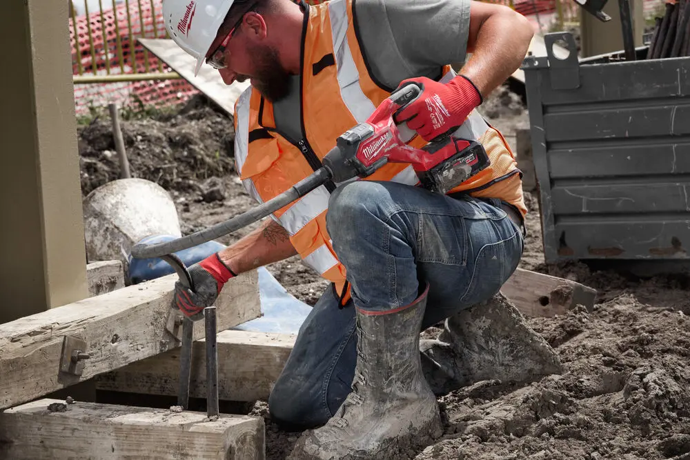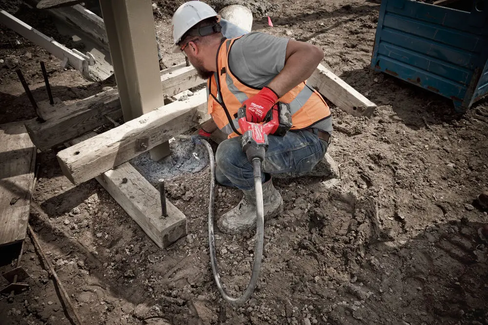 Aku jehlový ponorný vibrátor Milwaukee pro zhutnění betonu, typ FCVN24, kompaktní design do ruky / přenosný, spoušť s plynulou regulací vibrací, systém kompatibilní se všemi akumulátory M18, součástí balení je akumulátor M18 BH5.5 High output (18 V /