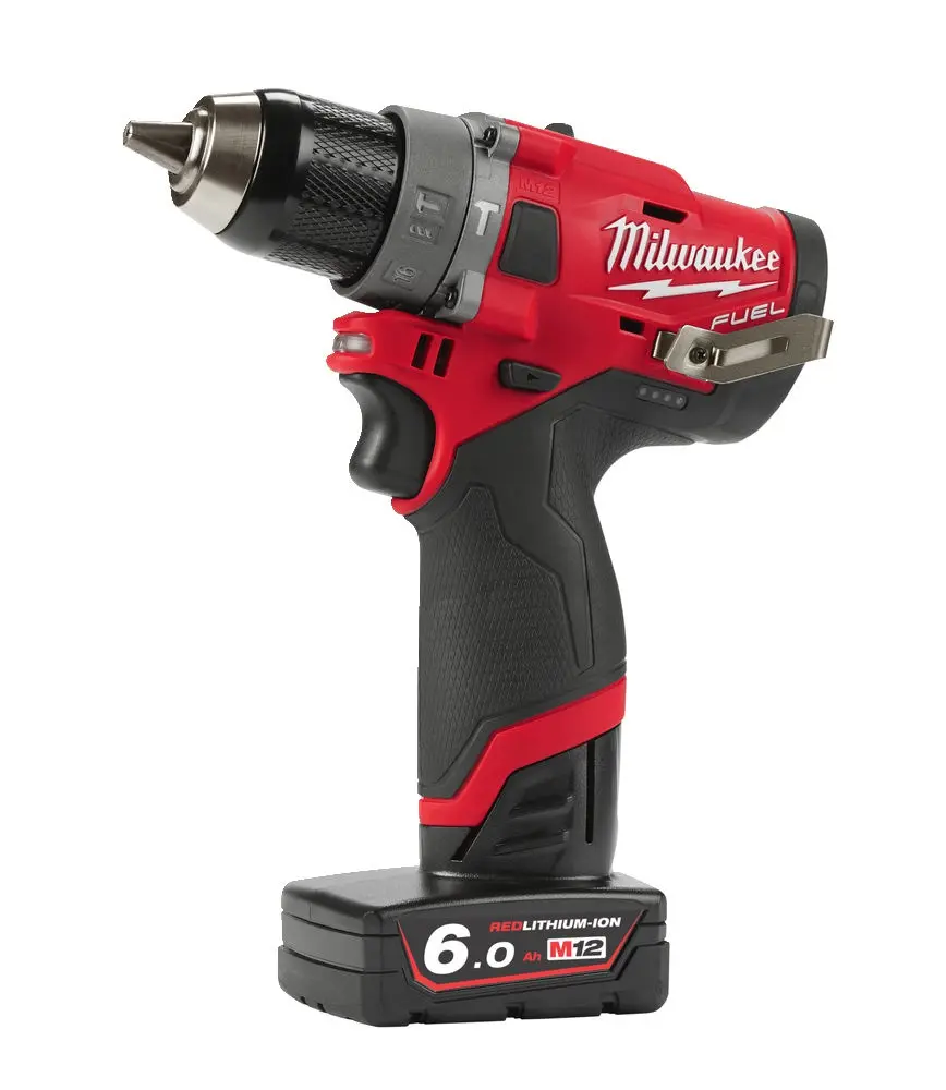 M12 FUEL ™ kompaktný vŕtací skrutkovač s príklepom, krútiaci moment 44 Nm s dvojicou akumulátorov 6,0 Ah.