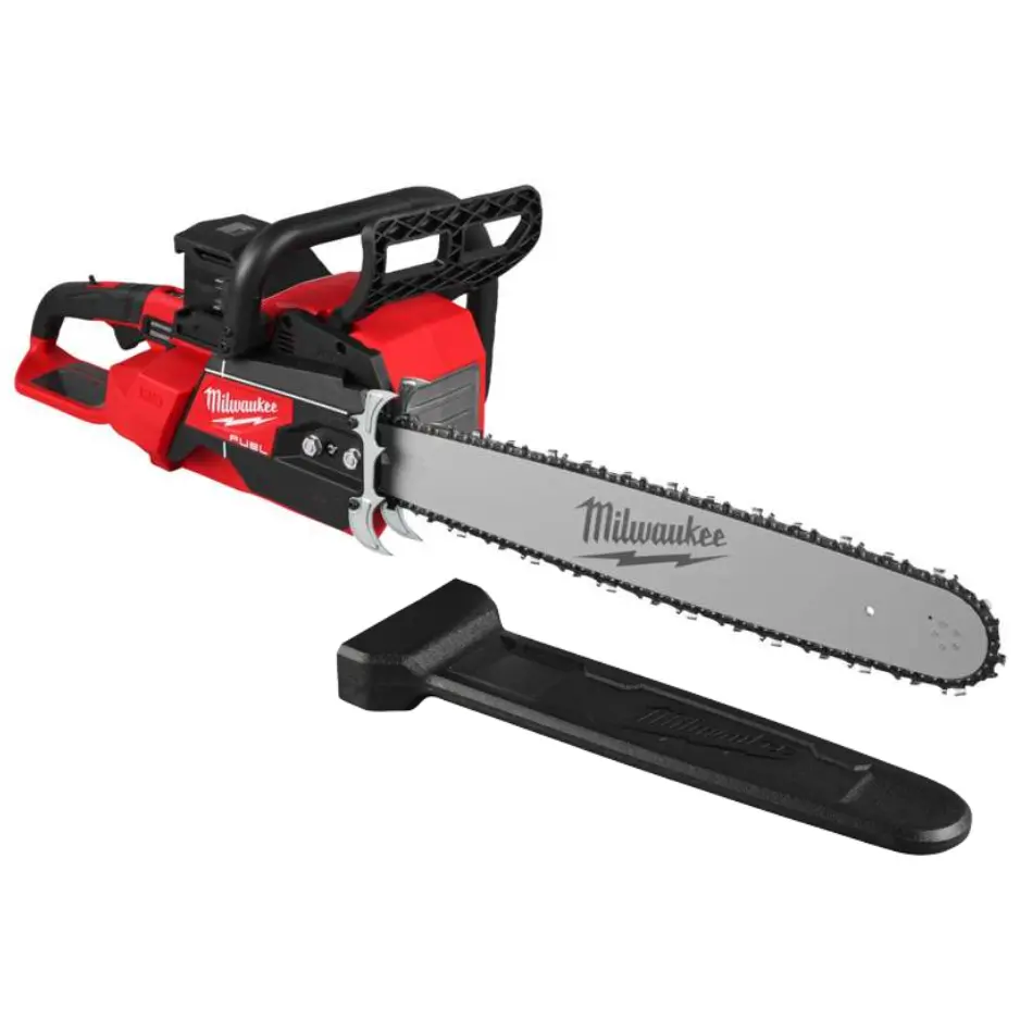 Akumulátorová řetězová pila Milwaukee M18 F2CHS50-0, lišta s řetězem o délce 50 cm (20“ / 508 mm), kryt lišty, 80 ml oleje. Rychlost řezání 14,3 m/s. Nádržka na olej s kontrolním okénkem. Balení bez akumulátoru a bez nabíječky. Zapojují se zároveň dv
