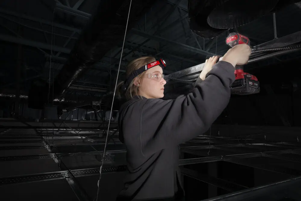 Akumulátorová čelová lampa Milwaukee na prilbu v systéme REDLITHIUM™ USB s vysokou viditeľnosťou a USB nabíjaním