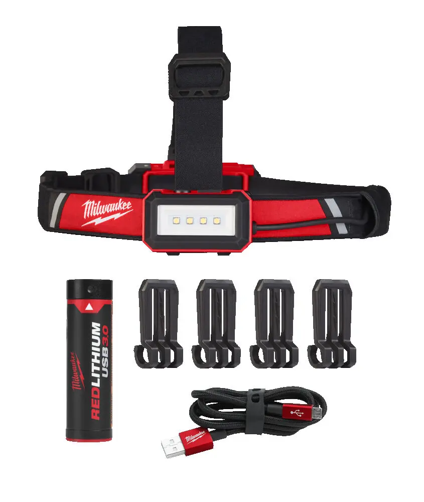 Súčasťou dodávky USB čelovej lampy Milwaukee na prilbu
