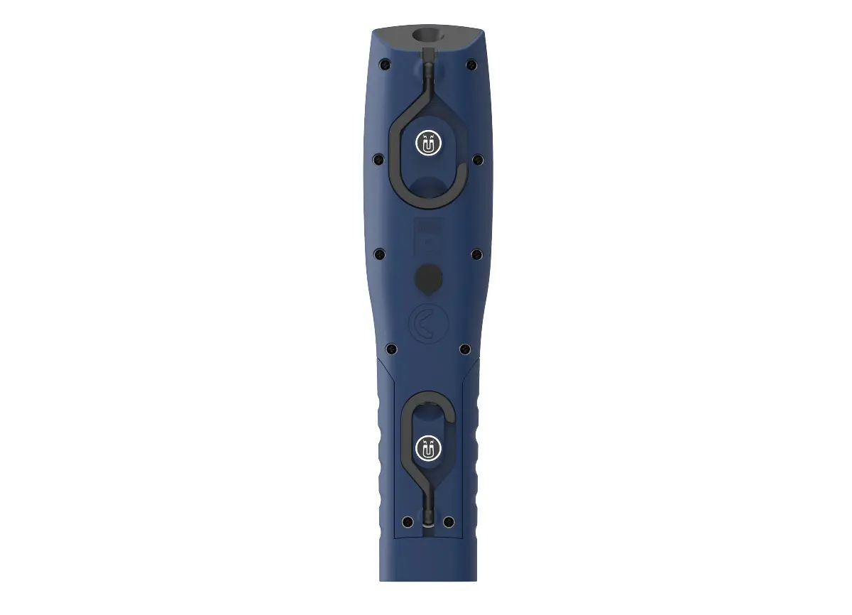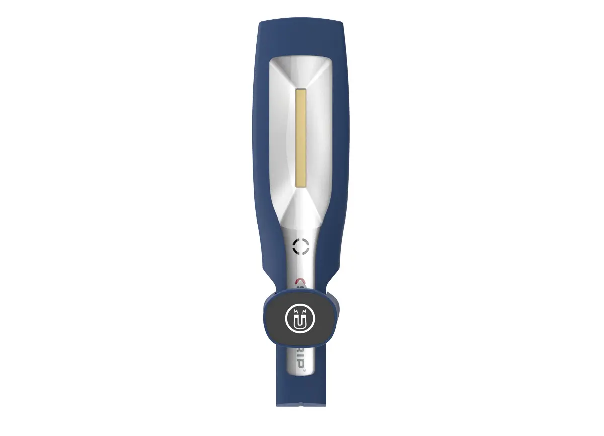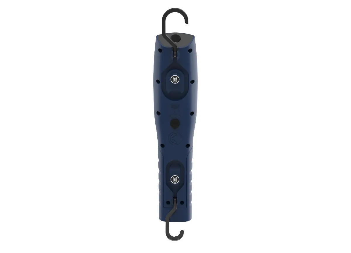 Konstrukce svítilny je robustní a odolná, což umožňuje její použití i v náročnějších podmínkách. Tělo svítilny je vybaveno magnetem a otočným hákem, takže ji lze snadno připevnit na kovové povrchy nebo zavěsit tam, kde je potřeba mít volné ruce. To zvyšuje flexibilitu při práci a umožňuje nasměrovat světlo přesně tam, kde je to nejvíce potřeba.
