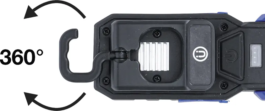Sklopná aku montážní COB LED lampa BGS1070051 nabízí silné osvětlení, magnet a háček pro snadné uchycení při práci v dílně nebo garáži.