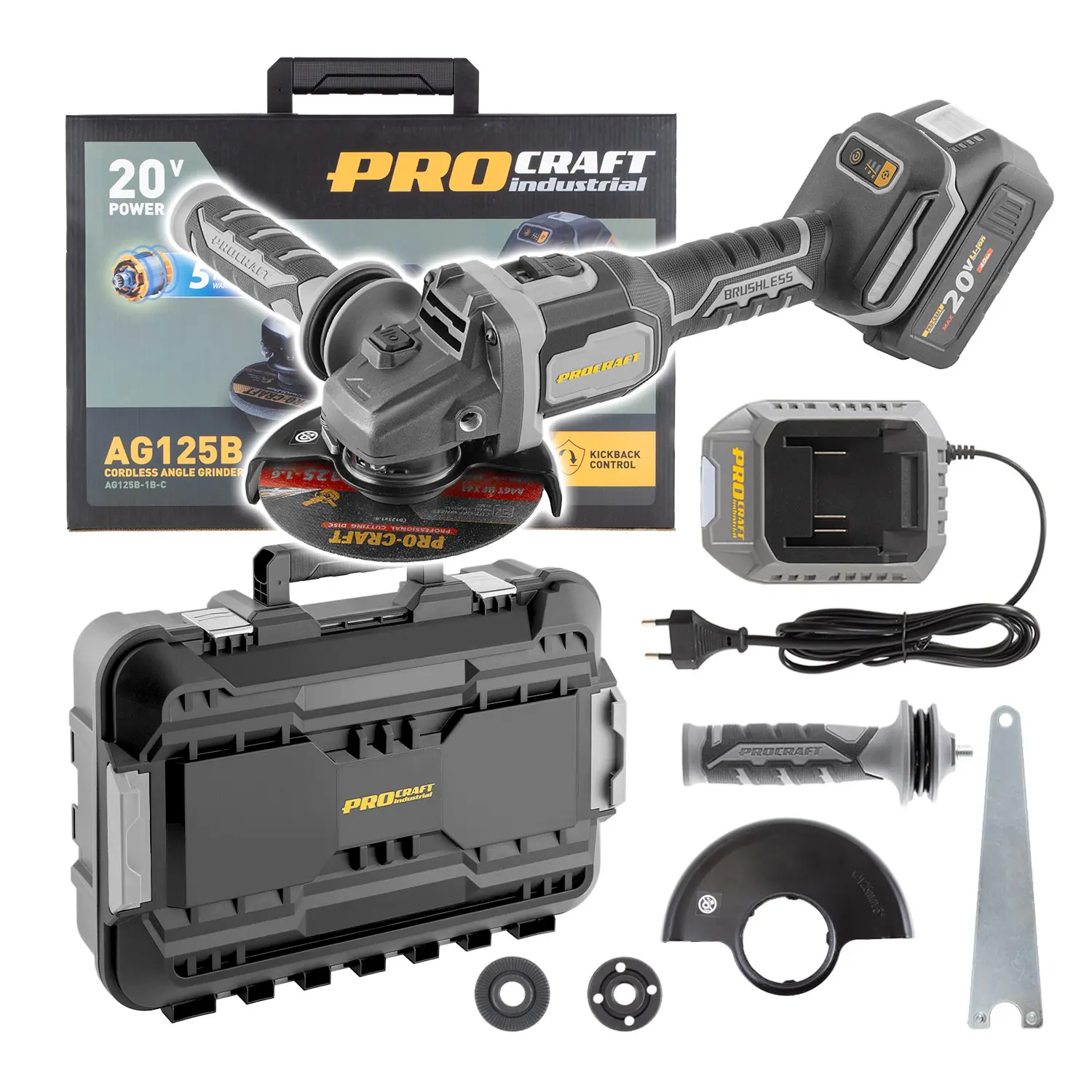 Aku uhlová brúska Procraft AG125B-1B-C, 125 mm (PRCAG125B-1B-C)