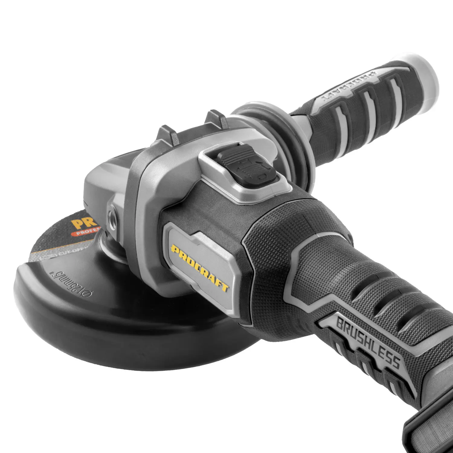 Aku uhlová brúska Procraft s bezuhlíkovým motorom, tromi rýchlosťami (4500/6500/9500 ot./min) a priemerom kotúča 125 mm. Ľahká (1,8 kg), s reguláciou otáčok a protišmykovým povrchom