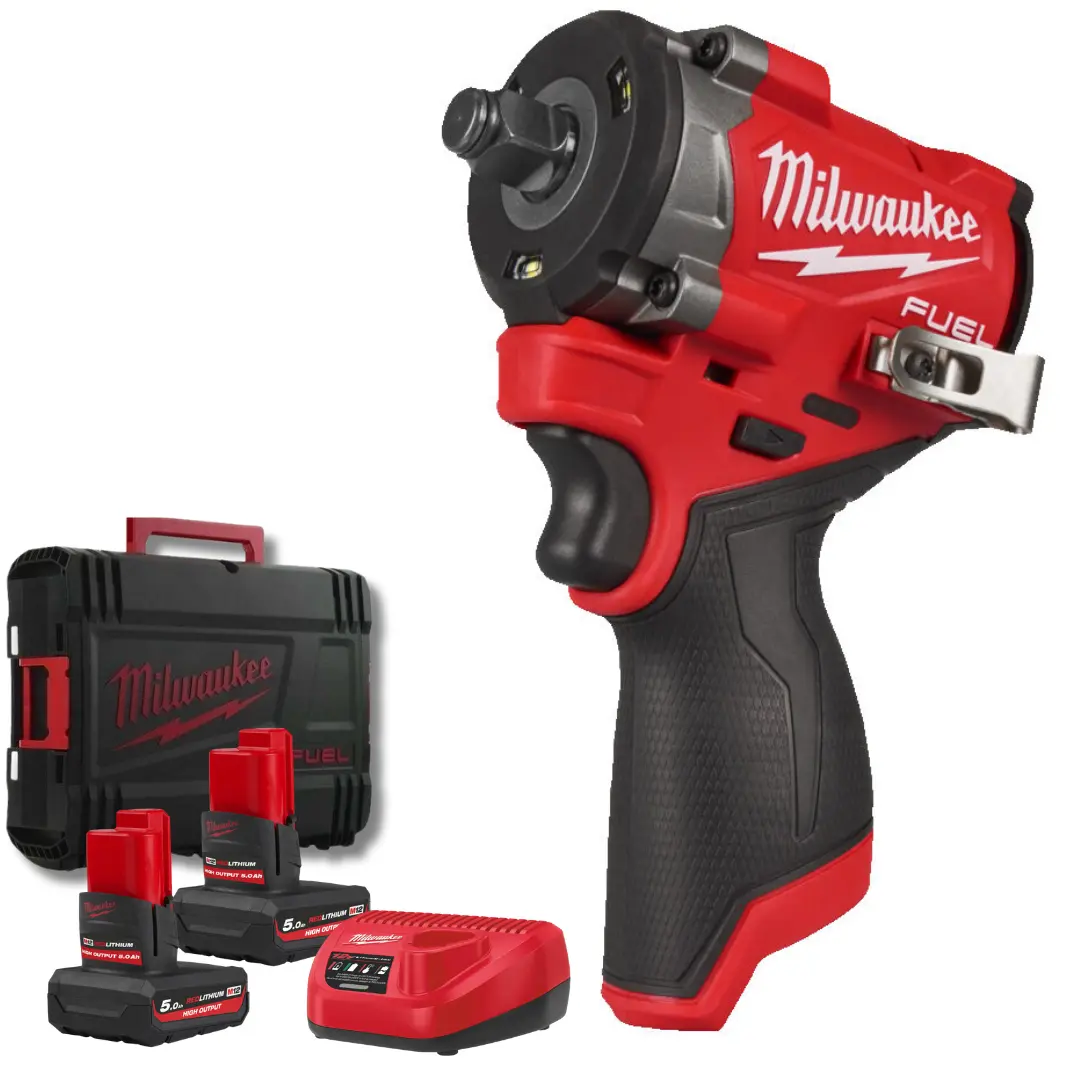 Kompaktní aku rázový utahovák Milwaukee M12 FCIWF12G3-502X nabízí utahovací moment 745 Nm, dvě baterie M12 HB5 a nabíječku v kufru. Vhodný pro práci v omezených prostorech díky ergonomickému designu a LED osvětlení.