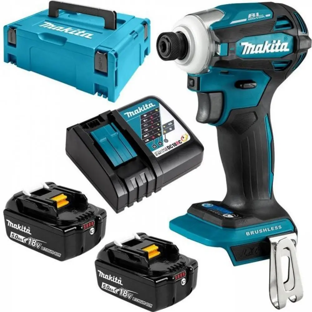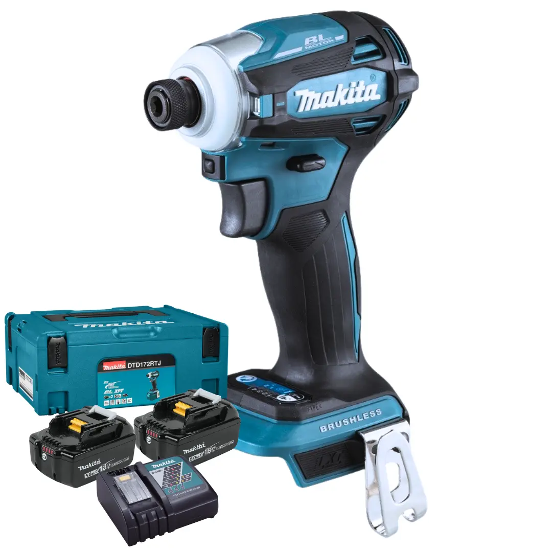 Akumulátorový rázový šroubovák Makita DTD172RTJ, s 2x akumulátorem 18V / 5.0 Ah (BL1850B), s aku nabíječkou 18 V (DC18RC) a kufrem.
