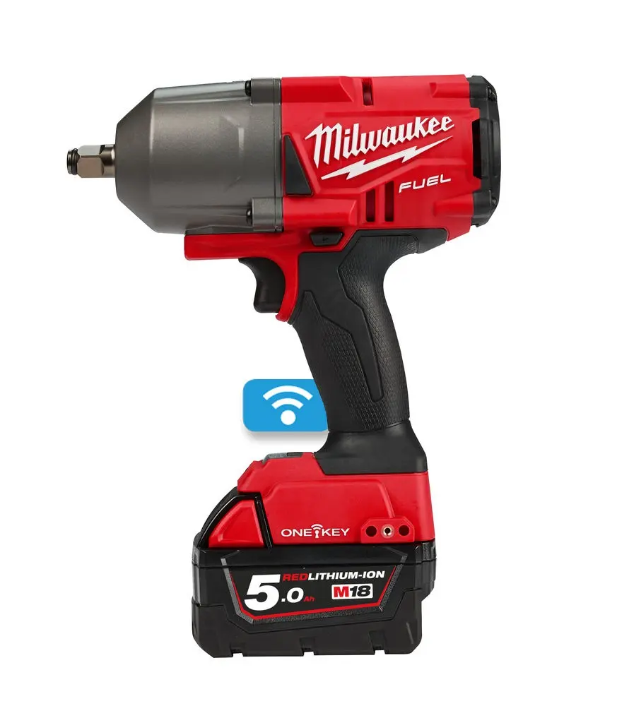 Akumulátorový rázový utahovák Milwaukee ONEFHIWF12-502X, balení s 2x akumulátorem M18 B5 (18 V / 5,0 Ah), aku nabíječkou M12-18 FC a HEAVY DUTY kufrem (HD BOX).