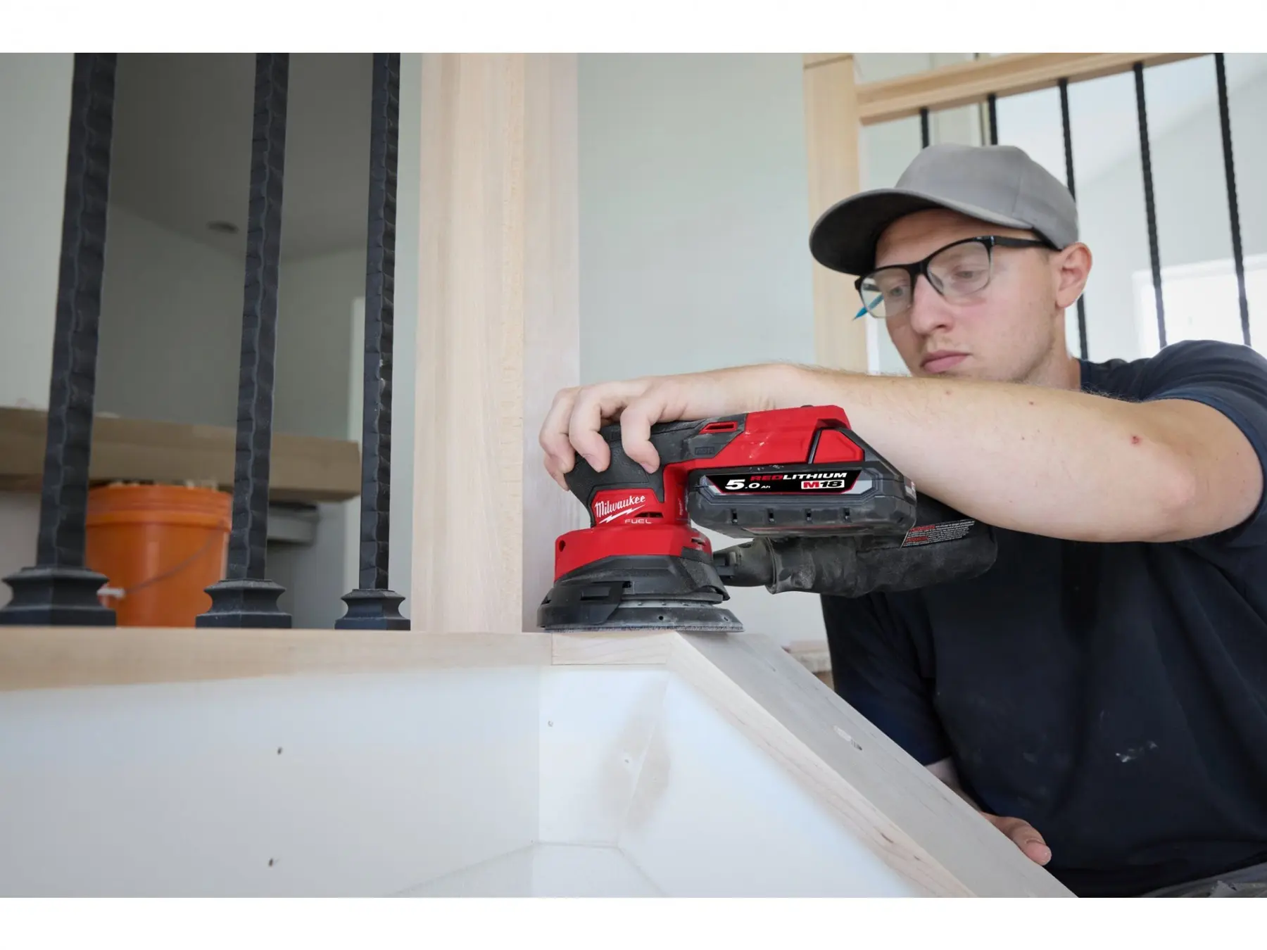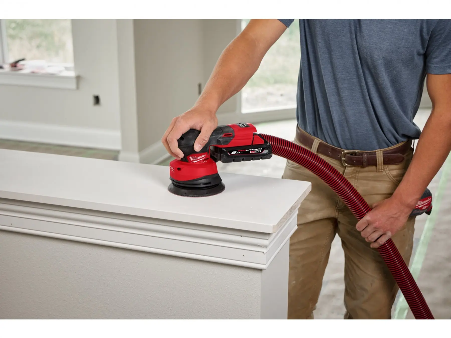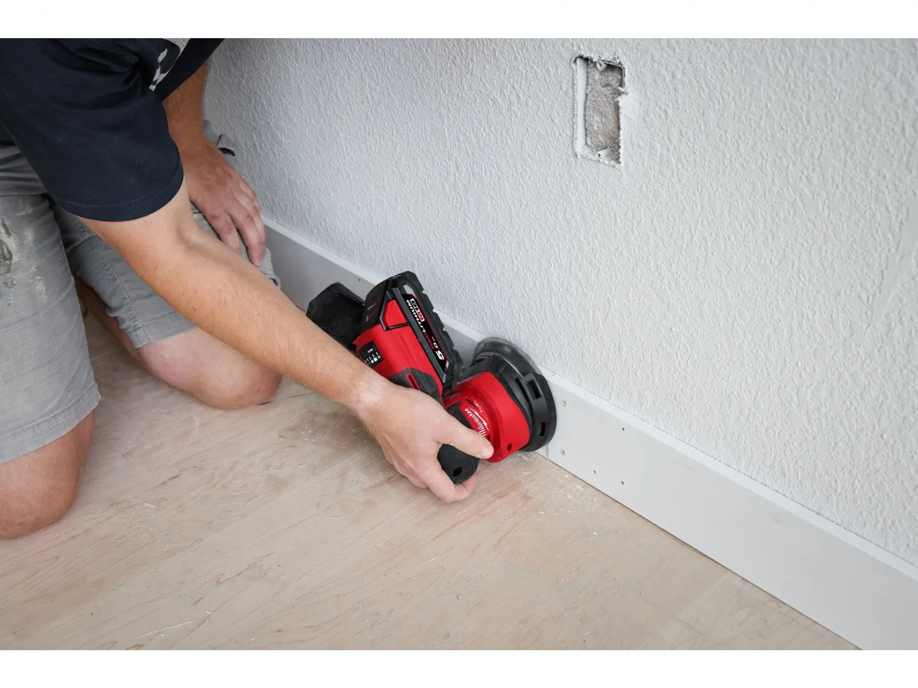 Aku oscilační (excentrická) vibrační bruska M12 FROS5, 8 rychlostí, průměr kotouče 125 mm, oscilační pohyb 2,38 mm s frekvencí 6000-12000 a 12000 ot./min, nízká hmotnost pouhých 1,45 kg.