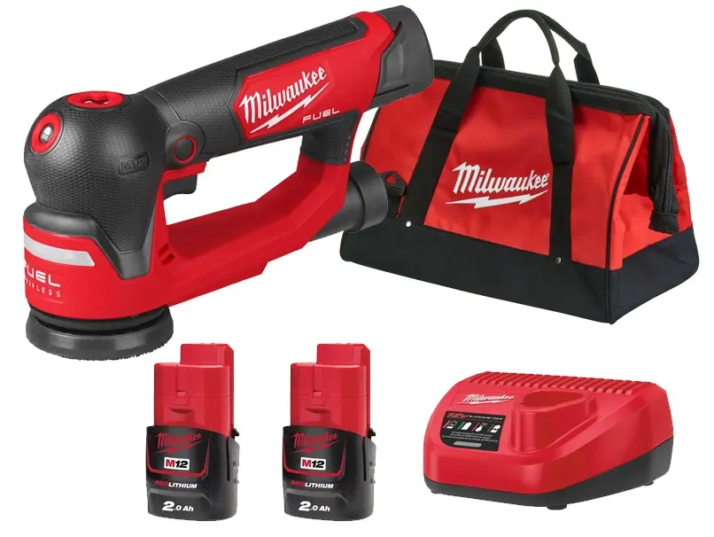 Aku excentrická bruska Milwaukee M12 FSDR75-202B s průměrem kotouče 75 mm nabízí bezuhlíkový motor, regulaci otáček a kompaktní konstrukci pro práci v těžko přístupných místech. Součástí balení jsou dvě baterie, nabíječka a kufr.