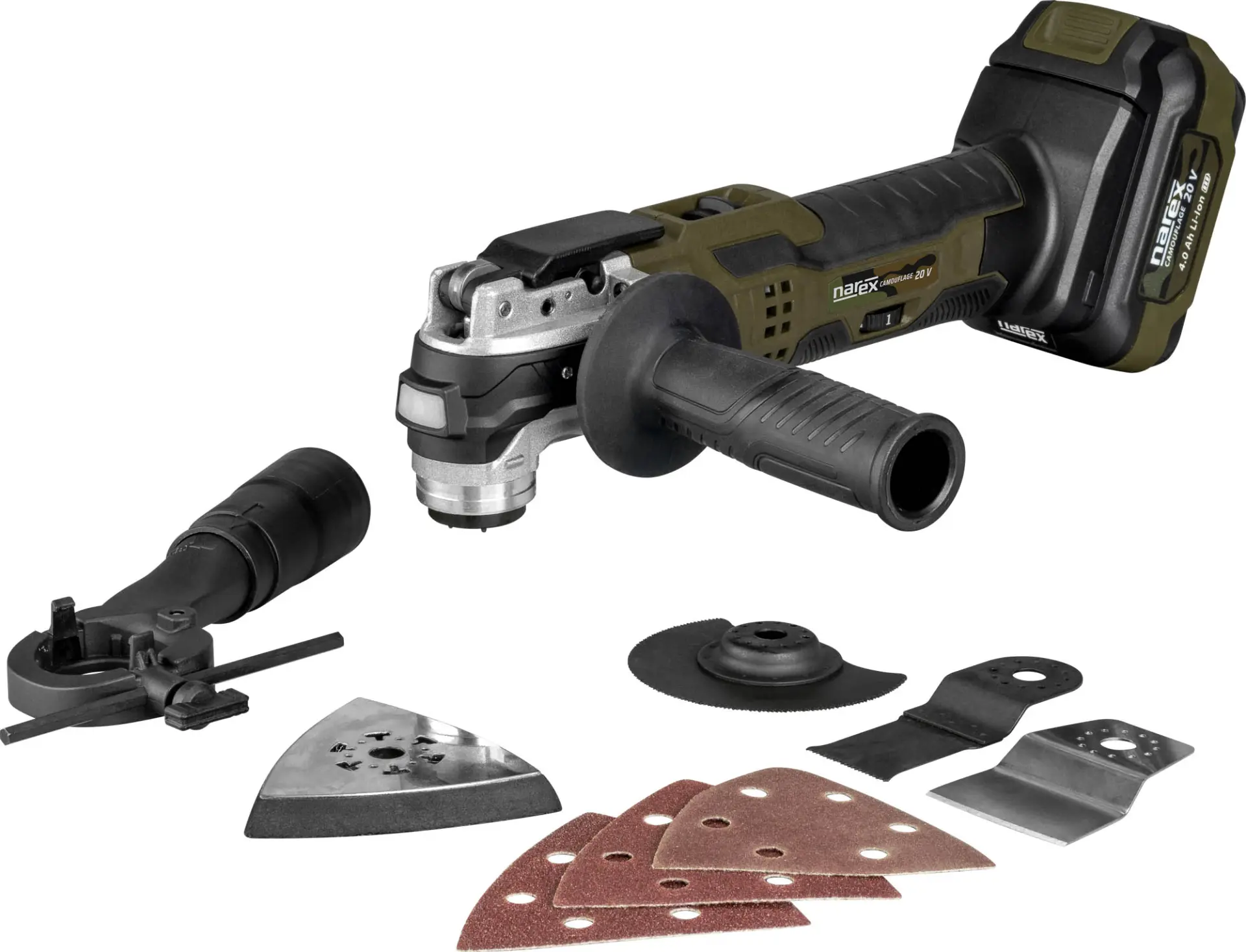 Akumulátorová oscilační pila CAMOUFLAGE NAREX CPM 3E BASIC BOX umožňuje rychlou výměnu nástrojů bez použití klíče a nabízí plynulou regulaci otáček pro přesné řezání i broušení. Ergonomická rukojeť a kompaktní design usnadňují práci v těžko přístupný