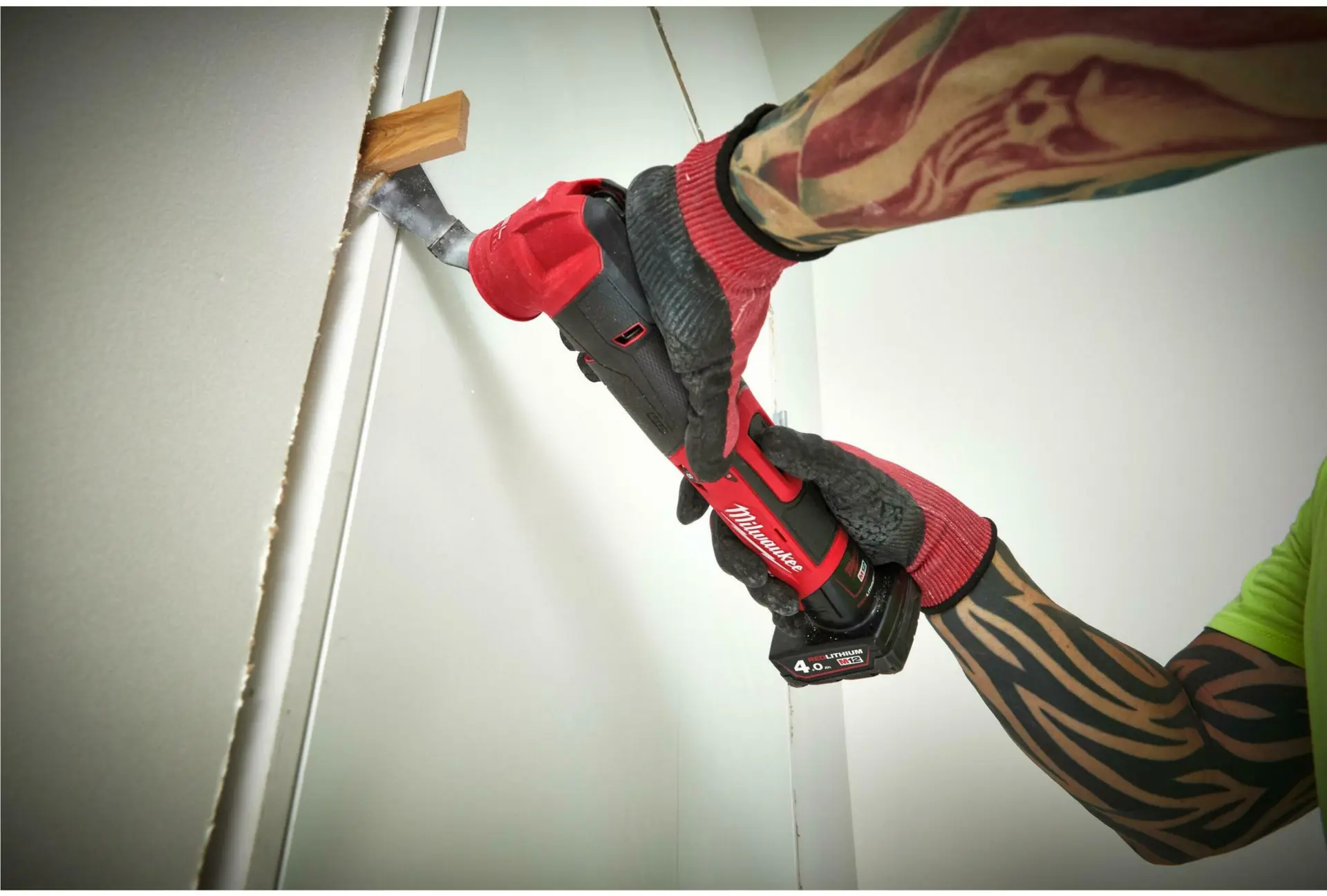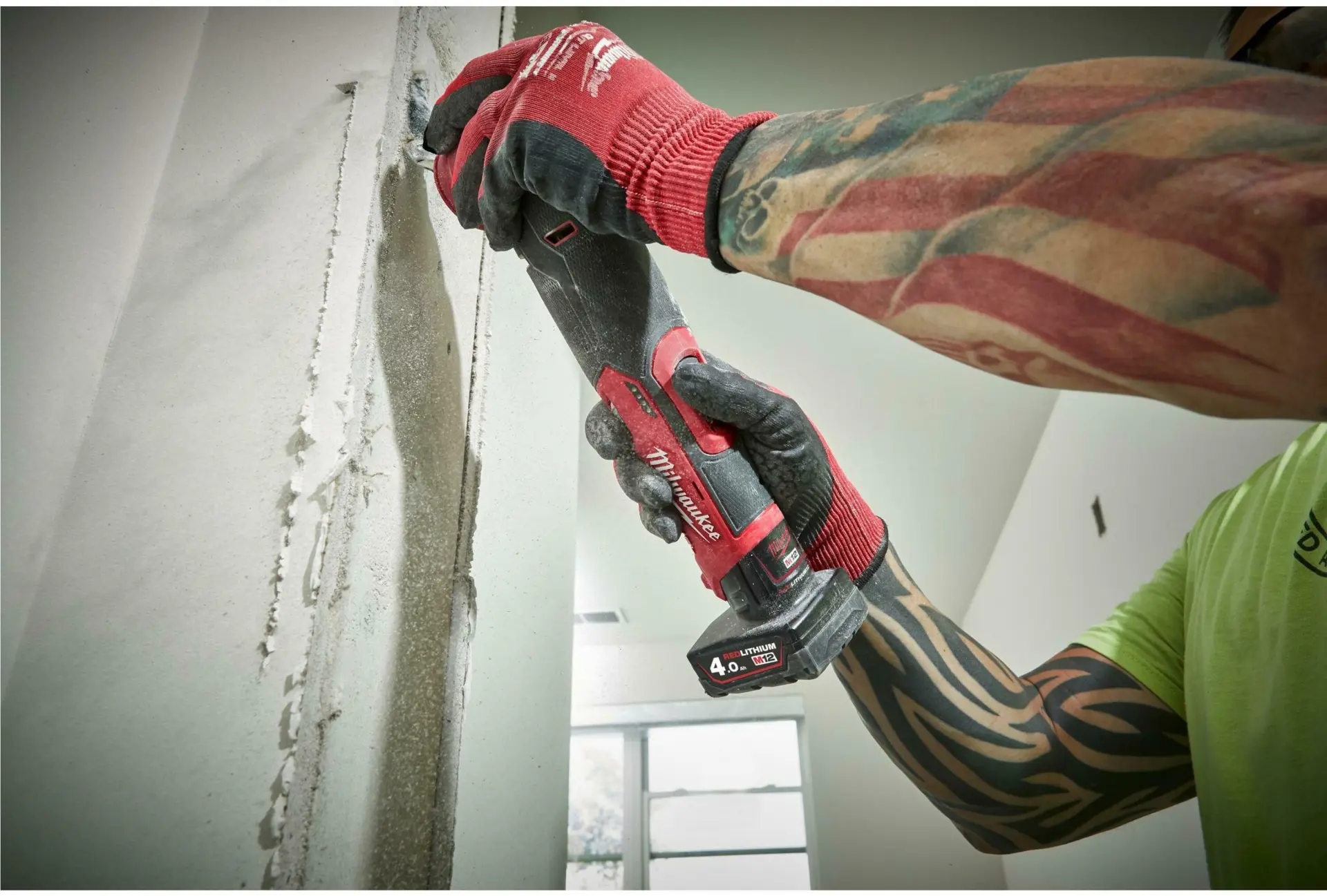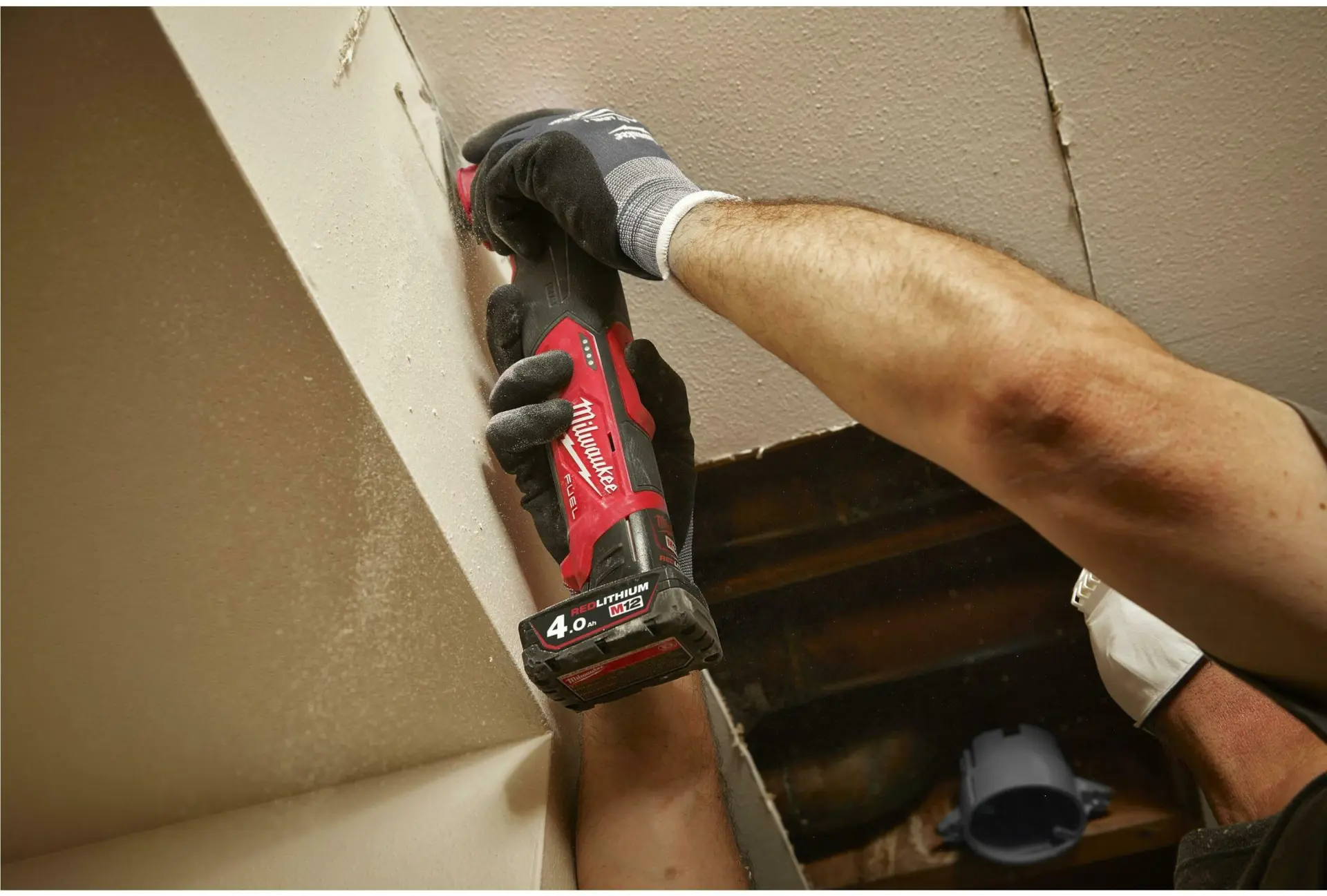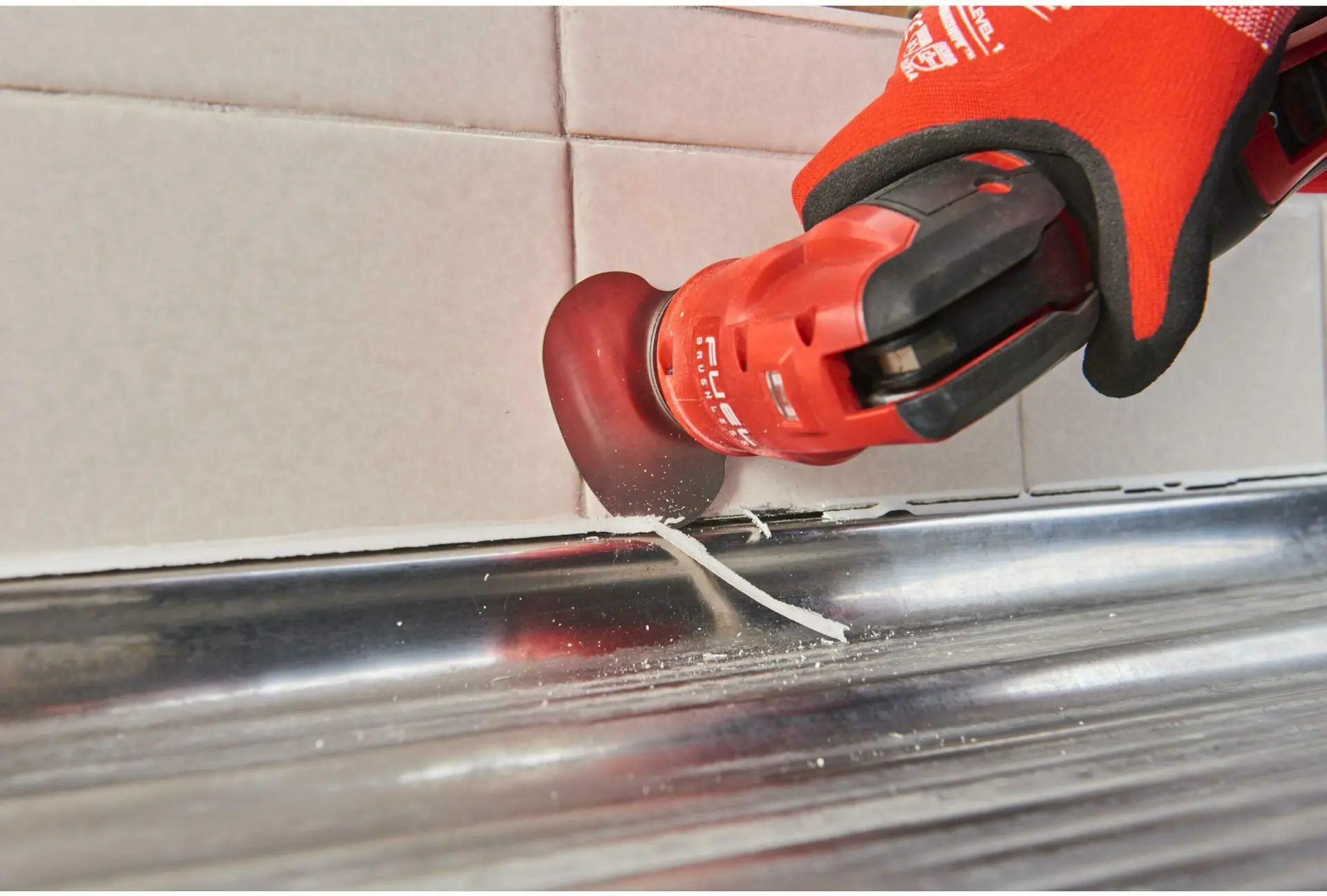 Multifunkční oscilační bruska Milwaukee M12 FMT-0, ekonomické balení bez akumulátoru, nabíječky a bez kufru, s příslušenstvím. Motor POWERSTATE, systém REDLINK PLUS, beznástrojová výměna příslušenství FIXTEX, Akumulátory REDLITHIUM M12, LED světlo,