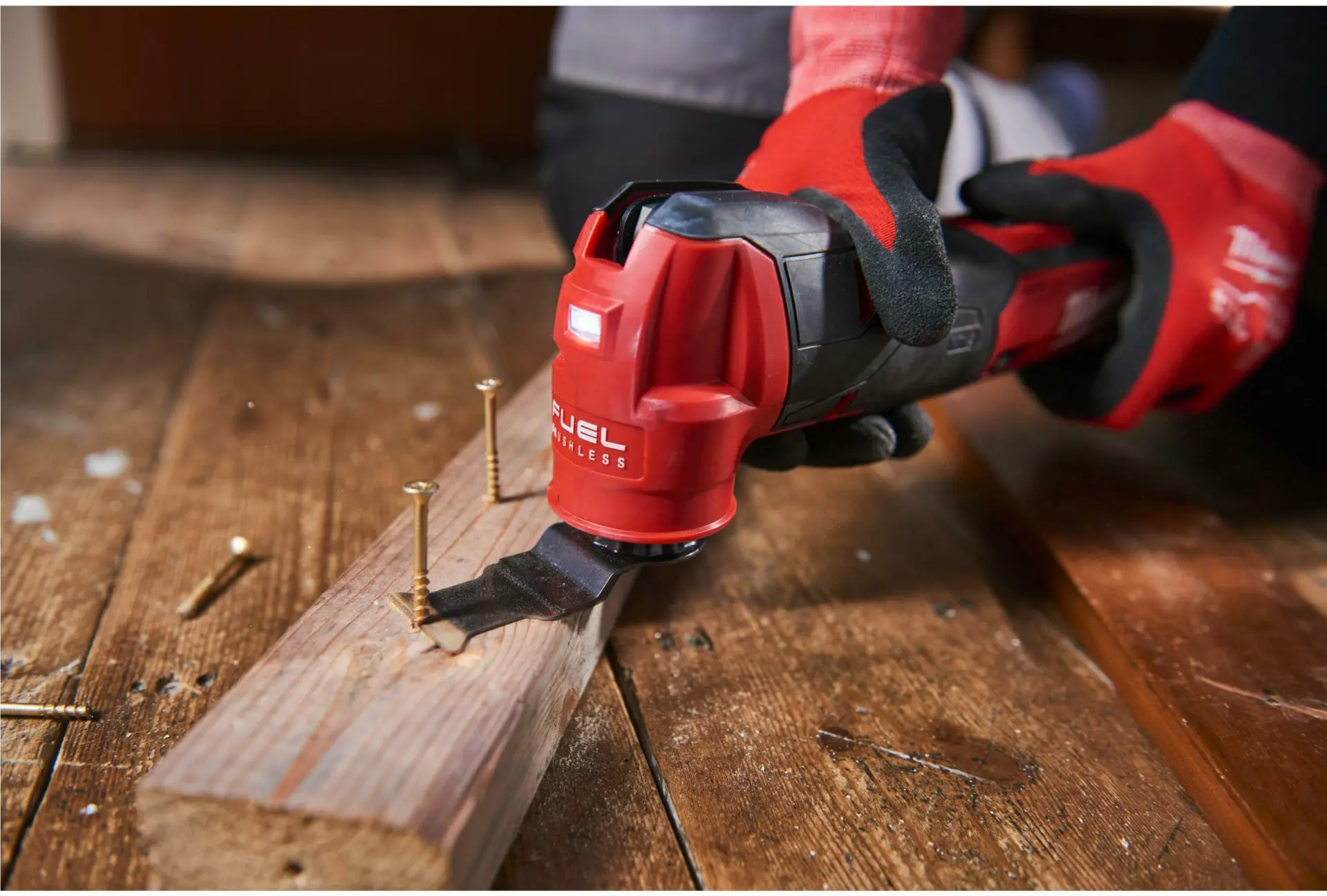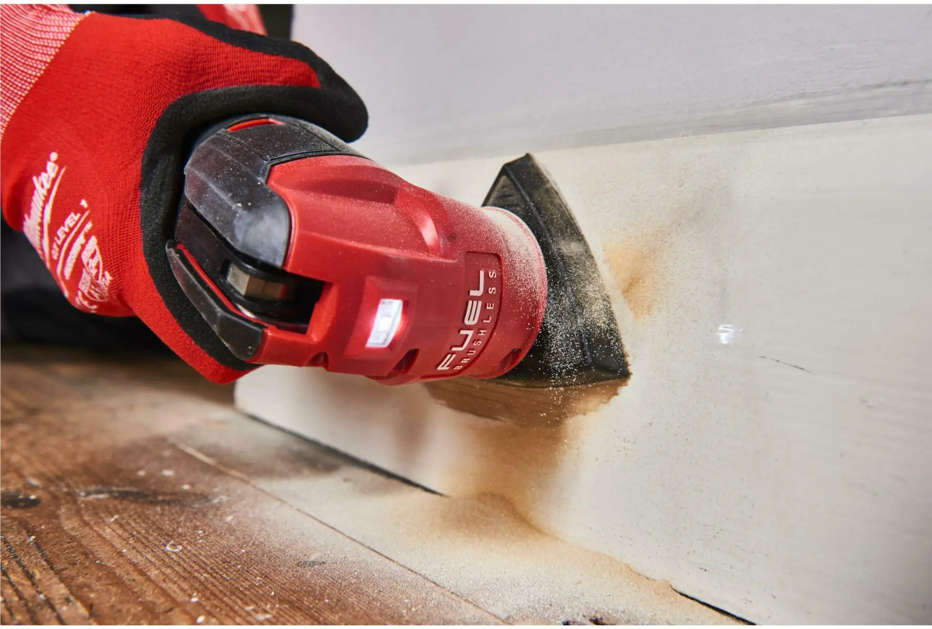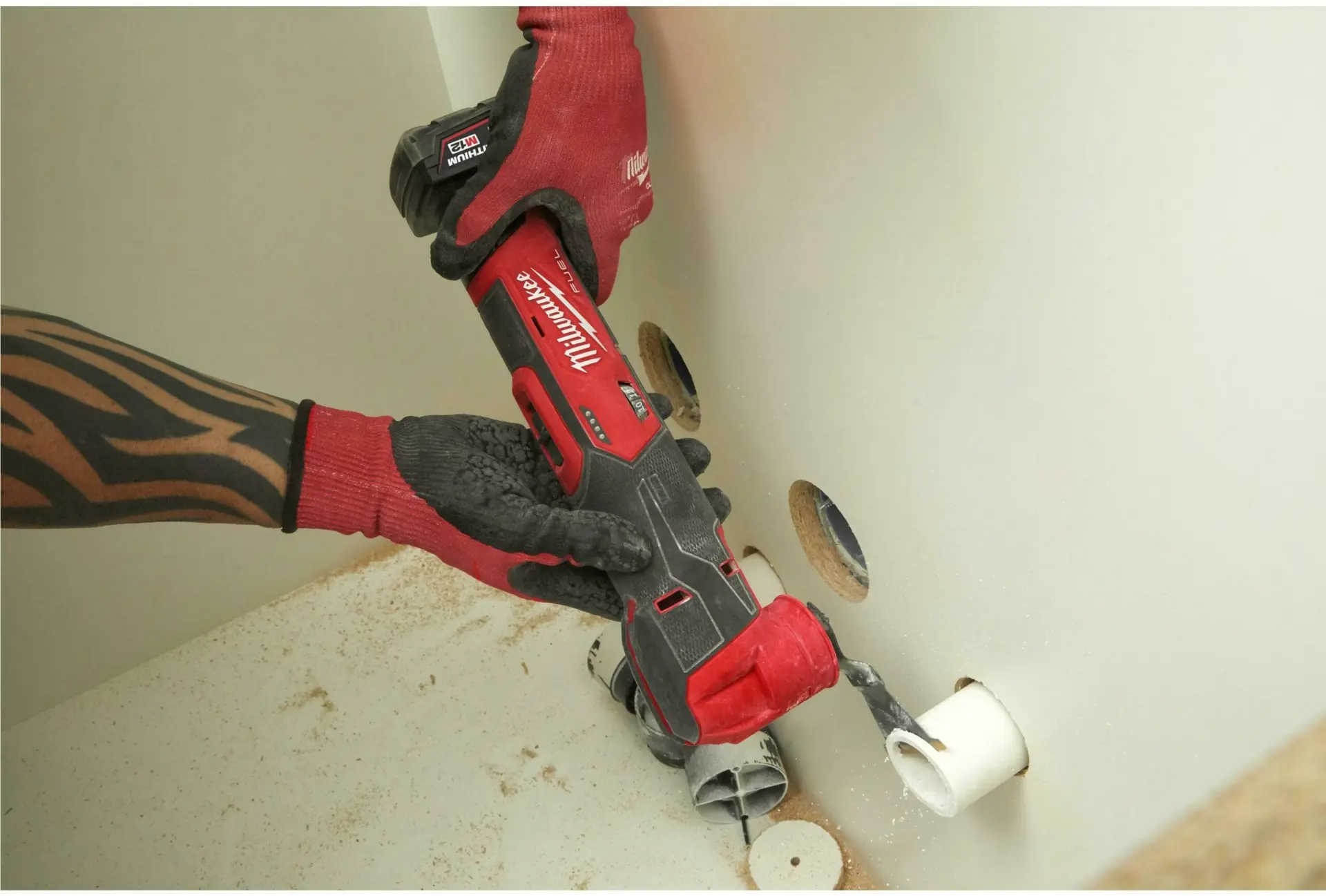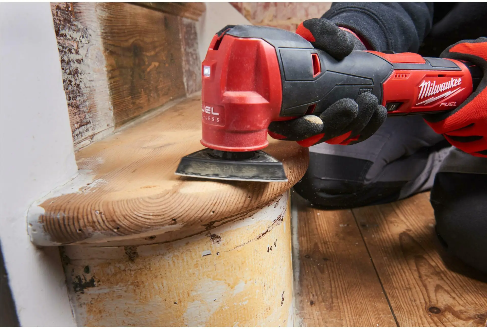 Multifunkční oscilační bruska Milwaukee M12 FMT-0, ekonomické balení bez akumulátoru, nabíječky a bez kufru, s příslušenstvím. Motor POWERSTATE, systém REDLINK PLUS, beznástrojová výměna příslušenství FIXTEX, Akumulátory REDLITHIUM M12, LED světlo,