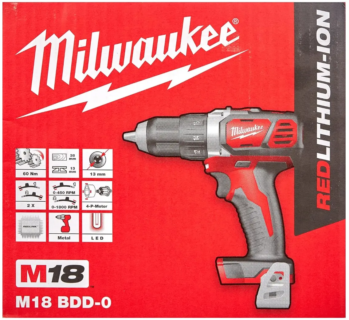 Aku vrtací šroubovák Milwaukee M18 BDD-0 nabízí 2 rychlostní stupně, točivý moment 50 Nm a upínání 13 mm, váží pouze 1,8 kg. Pracuje s 18V Li-Ion akumulátorem, který není součástí balení.