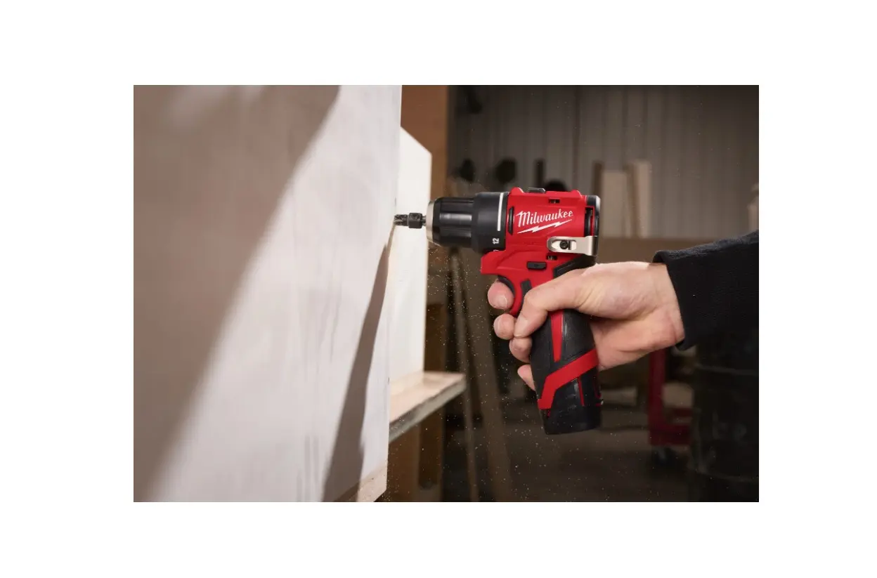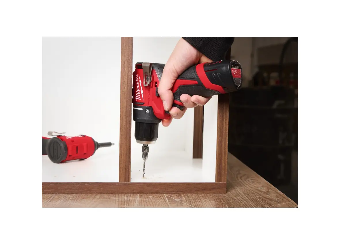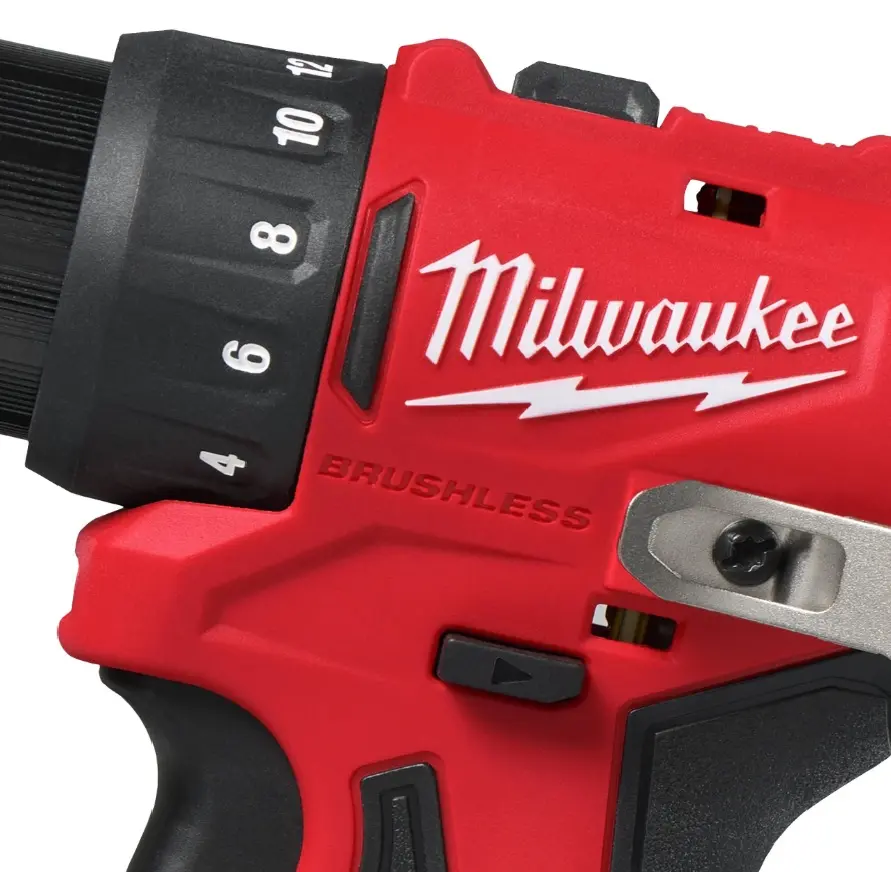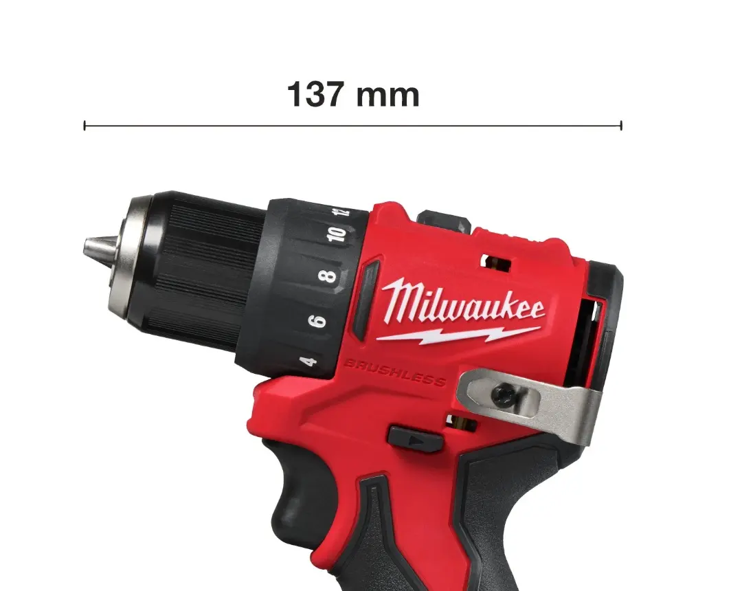 Akumulátorový vrtací šroubovák Milwaukee M12 BLDDRC-202C, sada obsahuje 2x aku M12 B2 (2.0 Ah), aku nabíječku M12 C12 C a kufr.