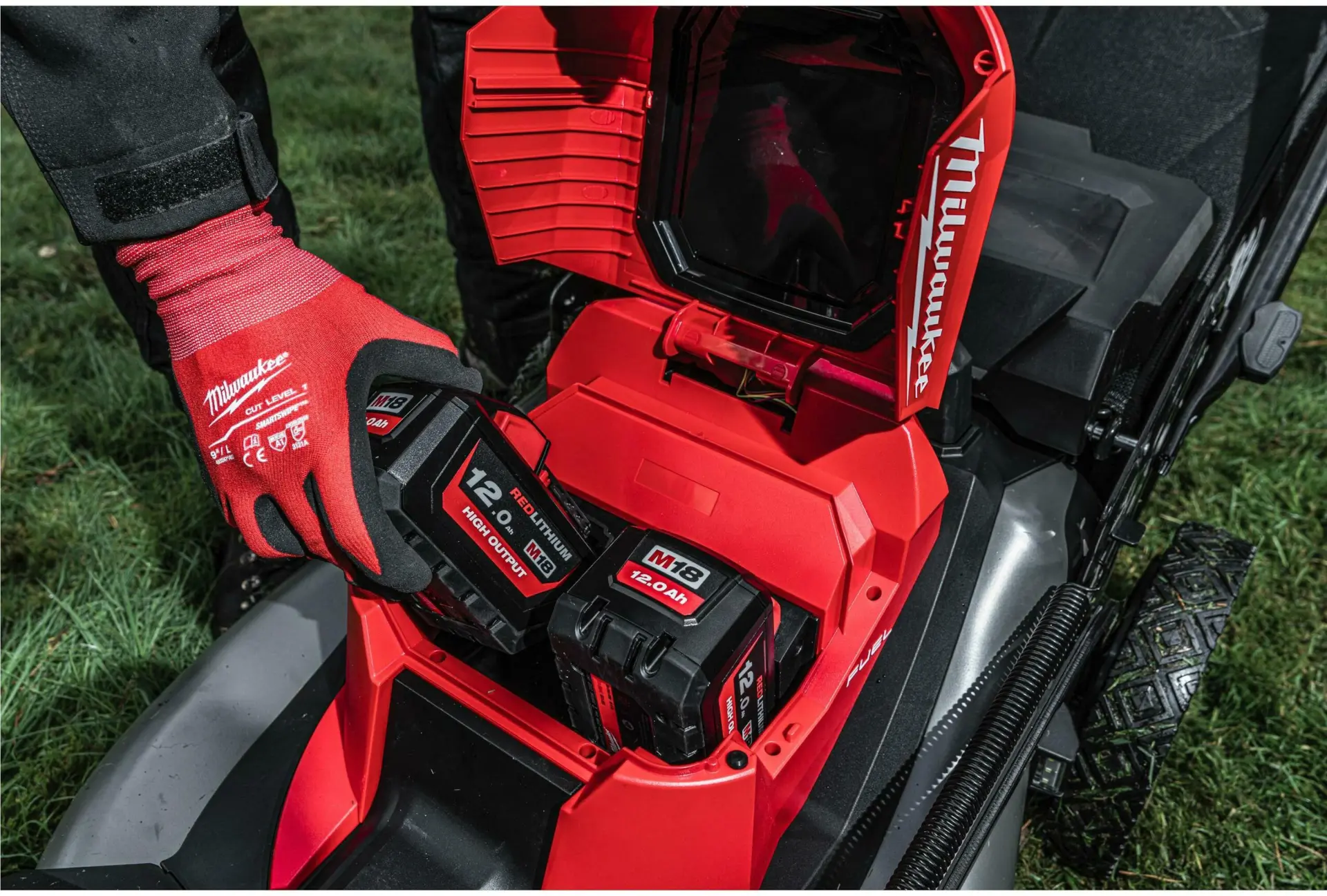 Na jedno nabitie dvoch 12,0 Ah akumulátorových modulov M18™ HIGH OUTPUT™ dokáže pokosiť plochu s rozlohou až 2.000 m2