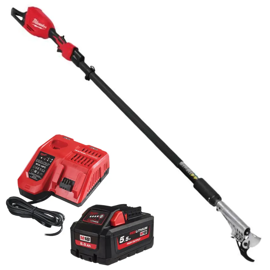 Akumulátorové prodloužené vyvětvovací nůžky Milwaukee M18 BLTS-551, teleskopická tyč - celkem 3000 mm, jsou určené pro stříhání větví do průměru 44,5 mm. Balení obsahuje 1x akumulátor M18 HB5.5a aku nabíječku M12-18 FC.