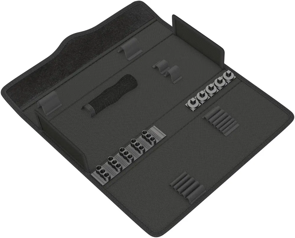 • Pevný uzávěr na suchý zip zabraňuje náhodnému otevření a ztrátě nástroje