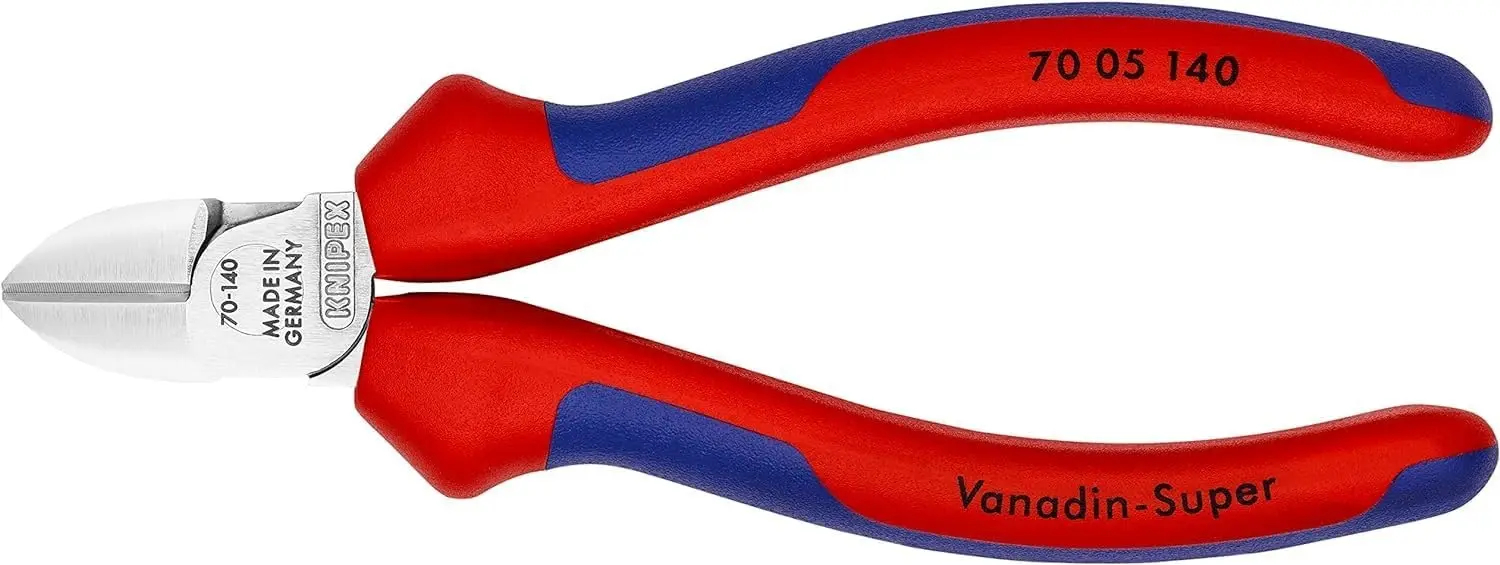 Bočné štiepacie kliešte KNIPEX 70 05 140 s dĺžkou 140 mm majú chrómovaný povrch a viaczložkové návleky pre pevný úchop pri práci s drôtmi. Vhodné na presné strihanie medených aj železných vodičov.