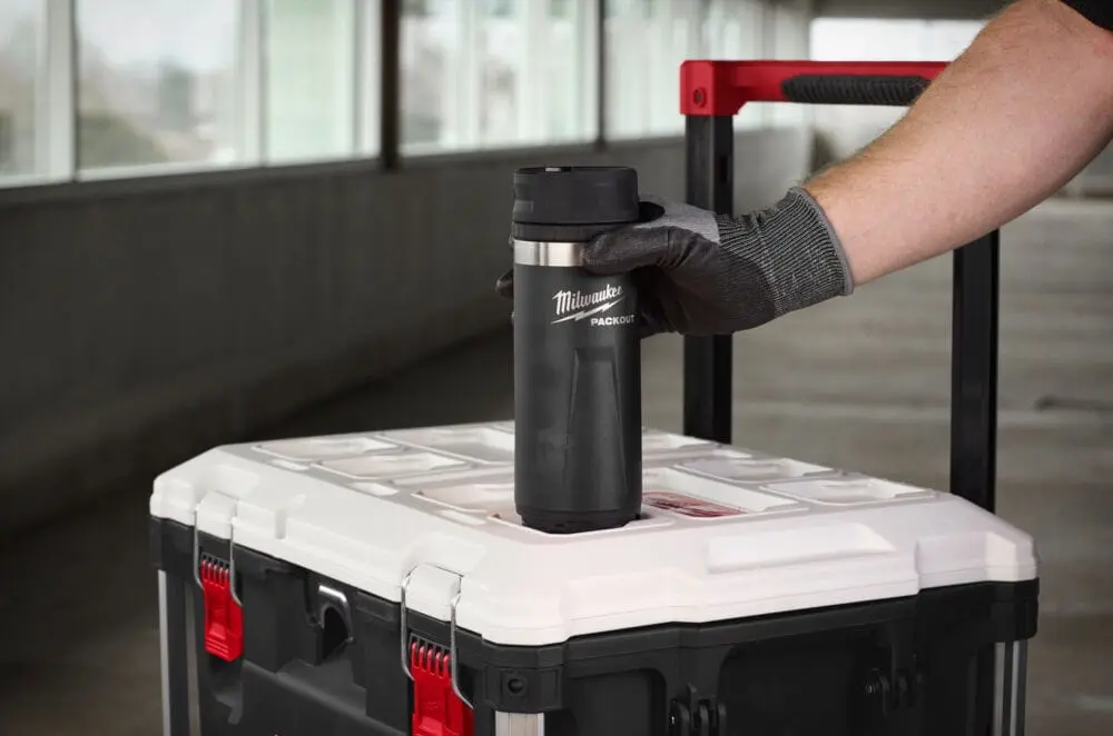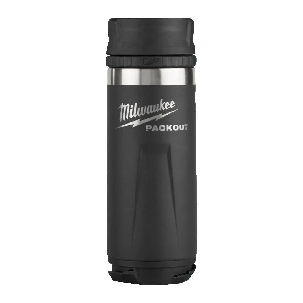 Láhev Milwaukee PACKOUT™ Sip Lid o objemu 532 ml je vybavena praktickým víčkem, které zabraňuje rozlití, a odolným tělem vhodným pro každodenní použití. Černé provedení doplňuje robustní konstrukci, která zapadá do systému PACKOUT™.