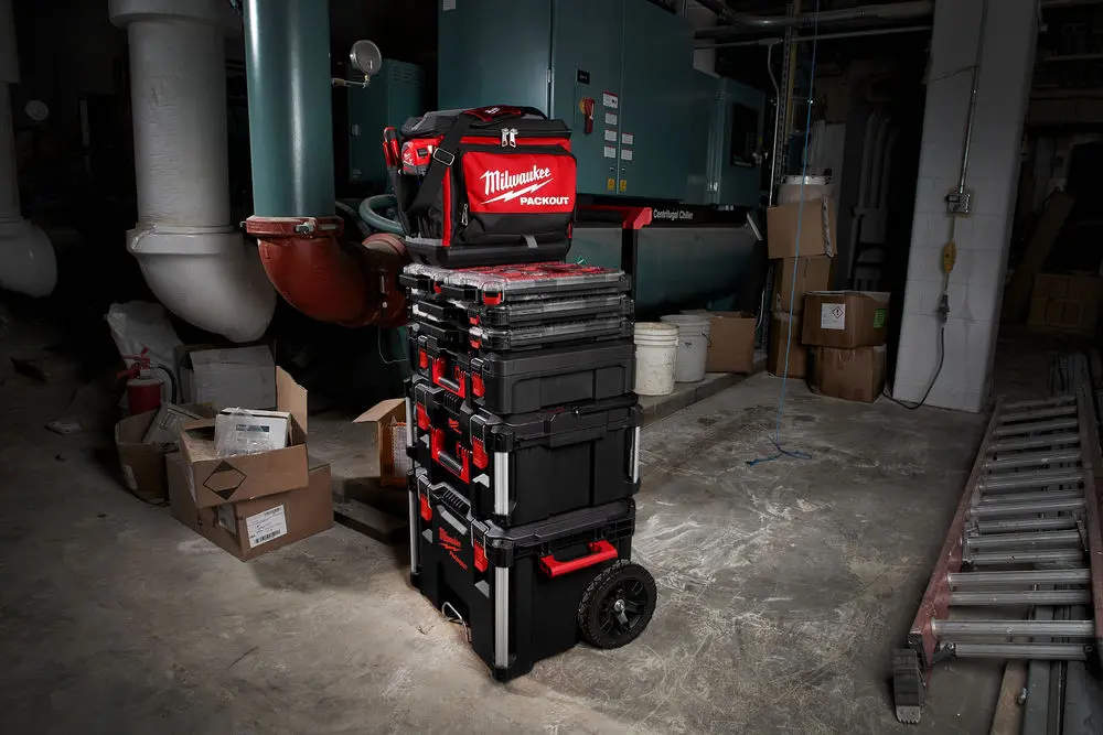 Spoločnosť Milwaukee®prináša revolúciu do oblasti prepravy, organizácie a skladovanie náradia svojím novým modulárnym skladovacím systémom PACKOUT™. Bol navrhnutý tak, aby užívateľom umožňoval výmenu a vzájomné zaistenie širokého sortimentu robustných boxov, organizérov a tašiek na náradie v rôznych konfiguráciách.