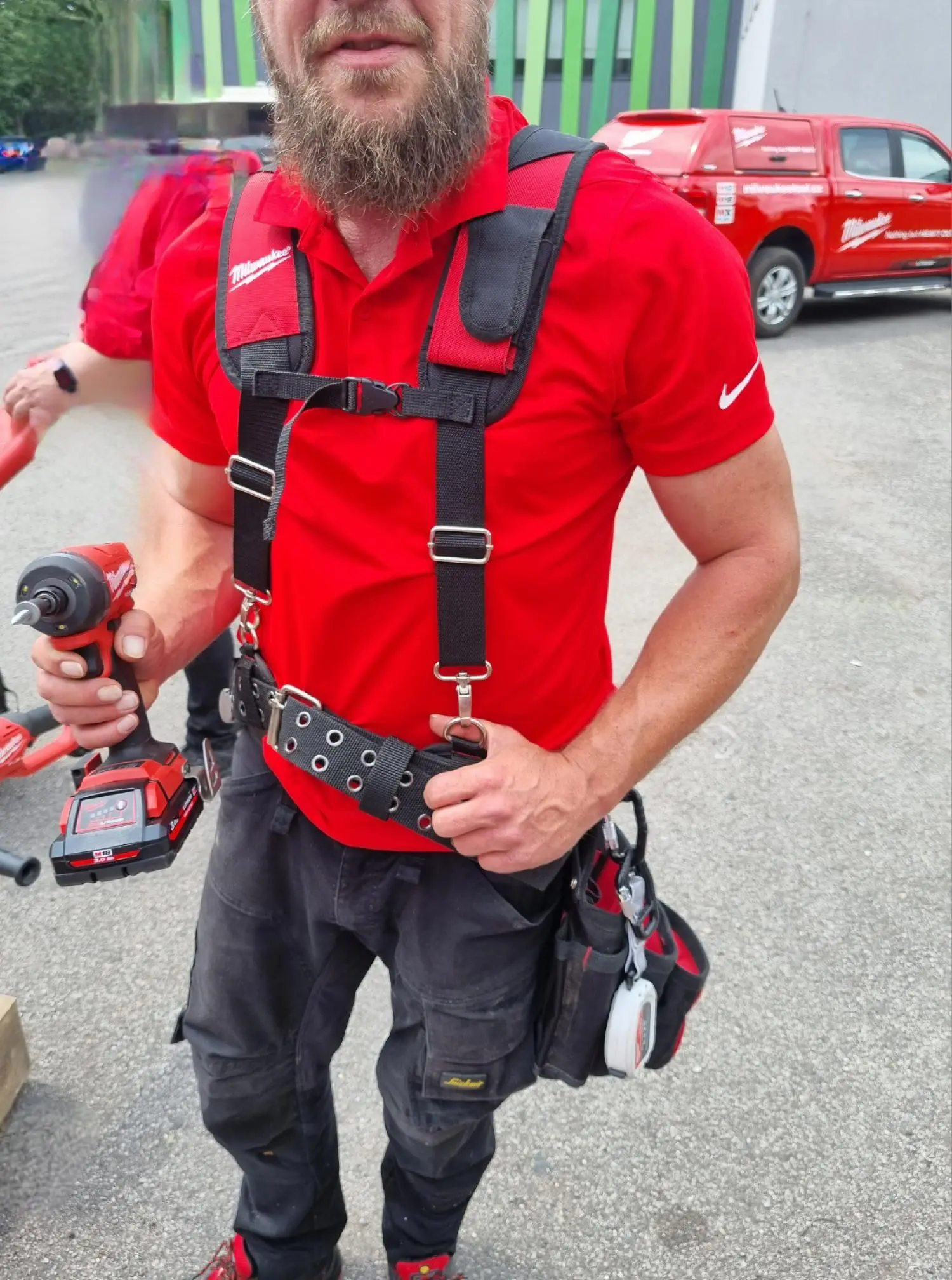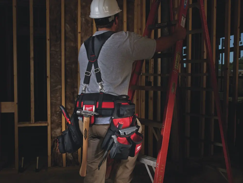 - Veľký úložný priestor: 2 samostatné vrecká, vrecko na mobilný telefón a držiak na kladivo