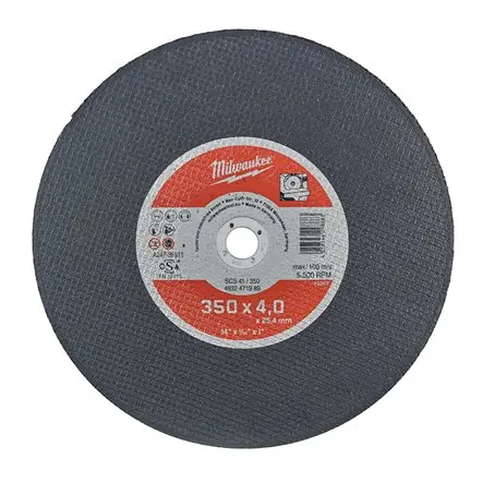 Kotouč Milwaukee PRO+ SCS 41 s průměrem 350 mm, tloušťkou 4 mm a otvorem 25,4 mm je určený pro řezání kovových materiálů. Vhodný pro profesionální použití v průmyslu i dílně.