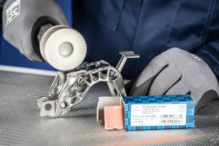 • Okrem použitia s plstenými nástrojmi sa leštiace pasty používajú tiež v kombinácii s látkovými krúžkami na predleštenie a leštenie do vysokého lesku