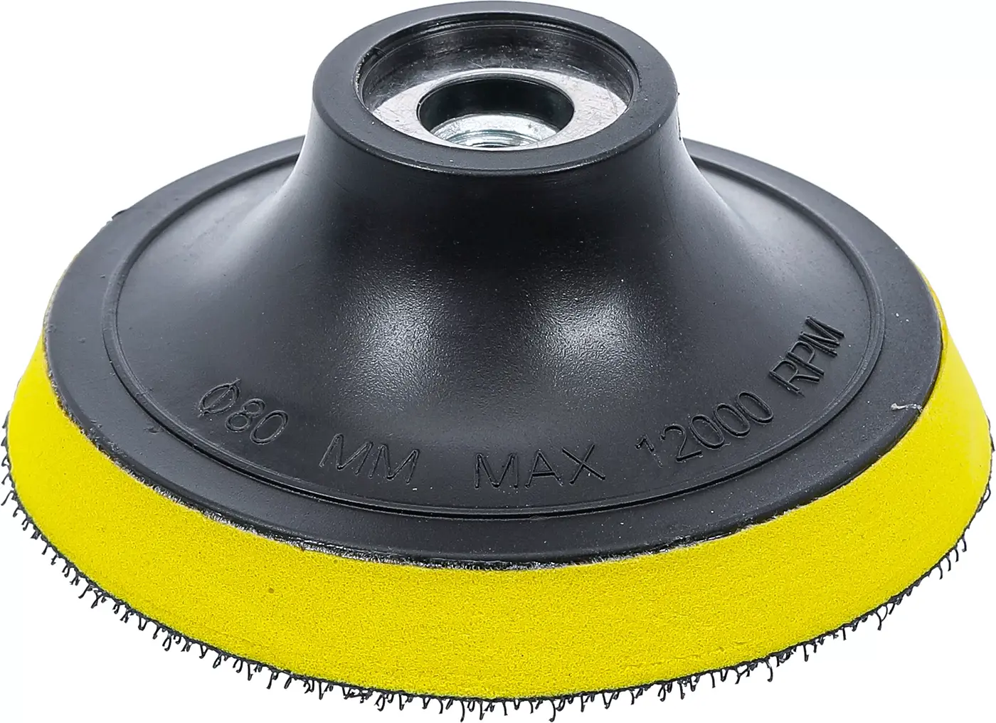 Brusný talíř o průměru 80 mm s upínáním na suchý zip umožňuje rychlou výměnu brusných kotoučů a je vhodný pro různé typy brusek. Robustní konstrukce zajišťuje dlouhou životnost při běžném používání.