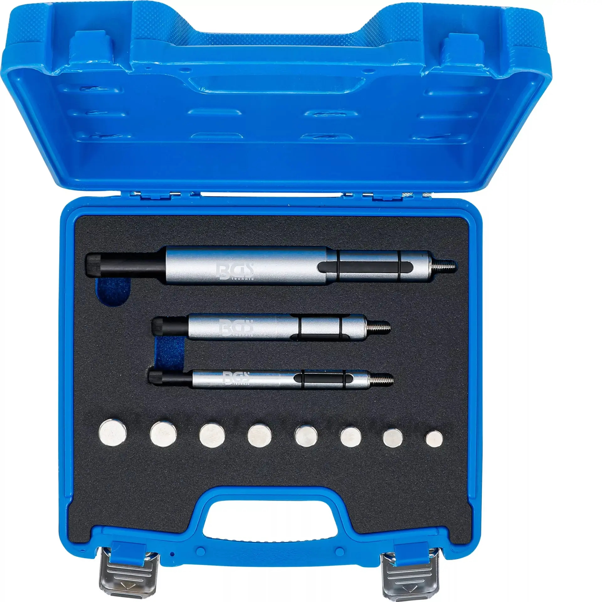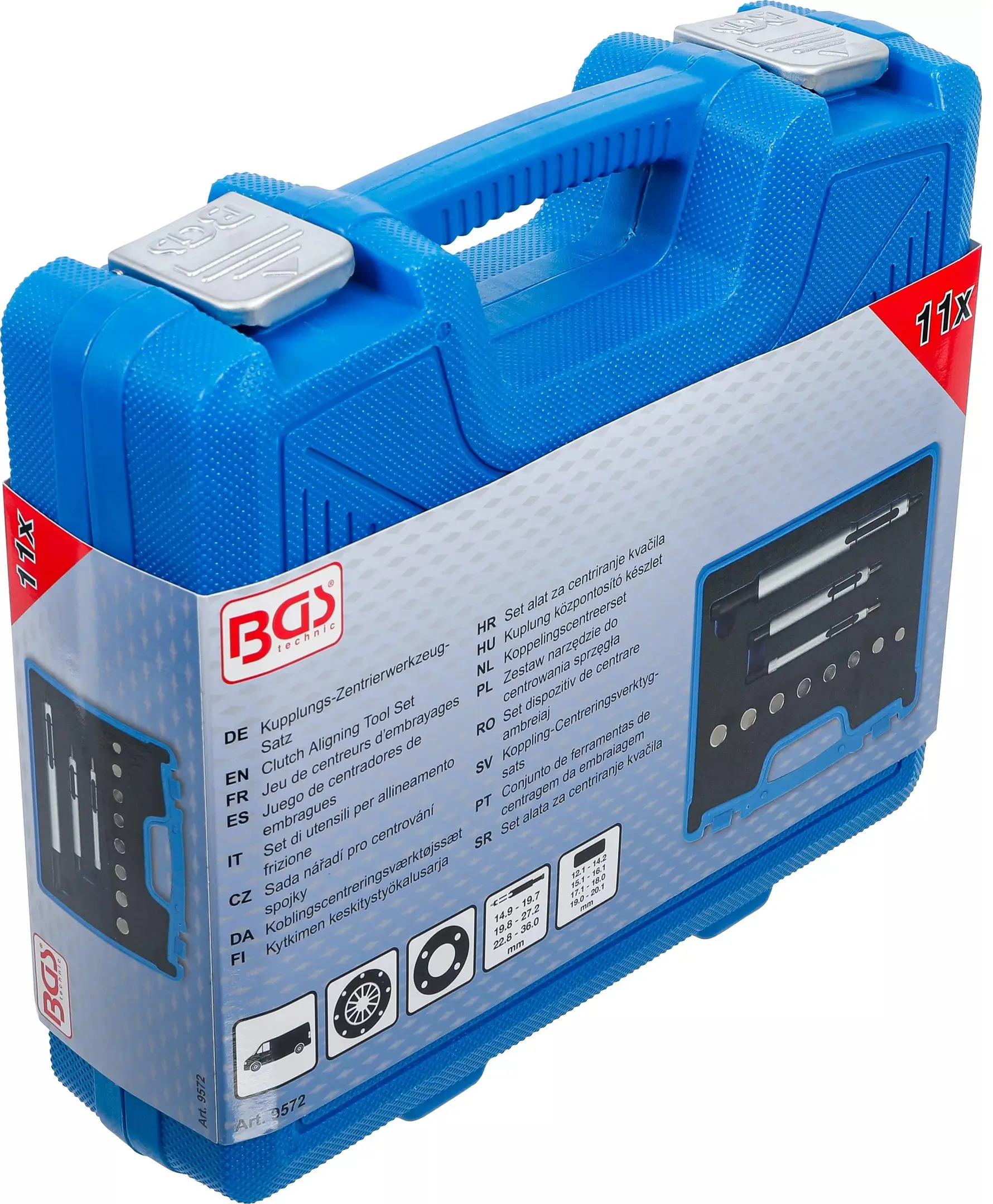 Sada centrovacích trnů spojky BGS109572 obsahuje 11 dílů pro průměry 12,1 až 36 mm, které usnadňují přesné vystředění spojky při montáži. Vhodné pro různé typy vozidel.